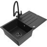 Mexen Bruno granite sink 1-bowl with drainer and Duo kitchen tap, grey - 6513-71-671701-70-B