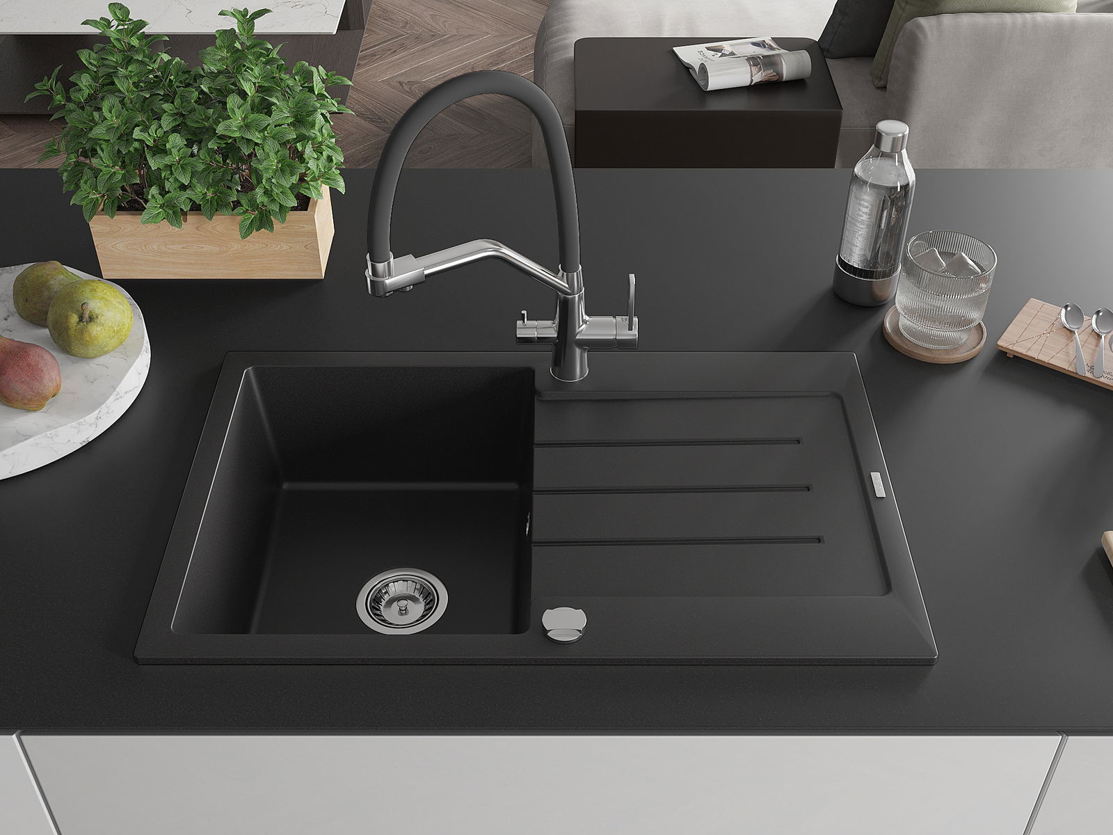 The sink is made of high quality granite. It is an elegant and, above all, practical complement to every kitchen, regardless of its style. High quality and granite durability ensure many years of use.