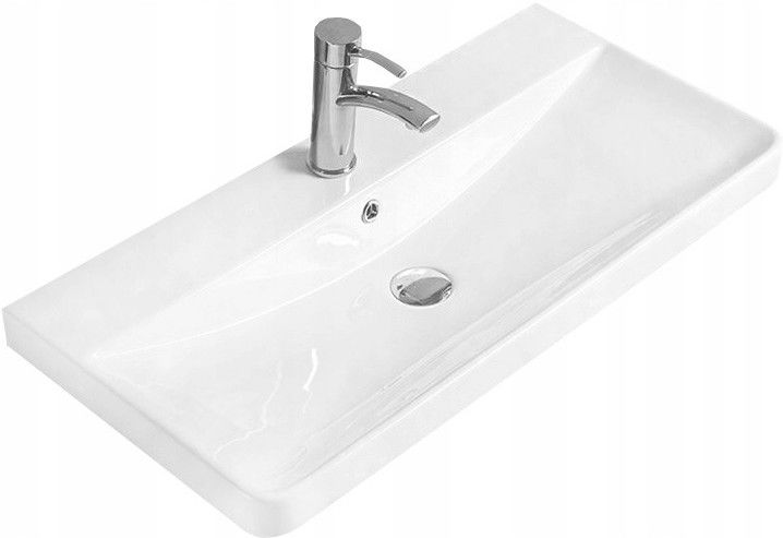 The sink has a hole in which we can mount the battery. This saves a valuable space in the bathroom and emphasize its aesthetics. This solution also allows you to easily keep clean around the sink.