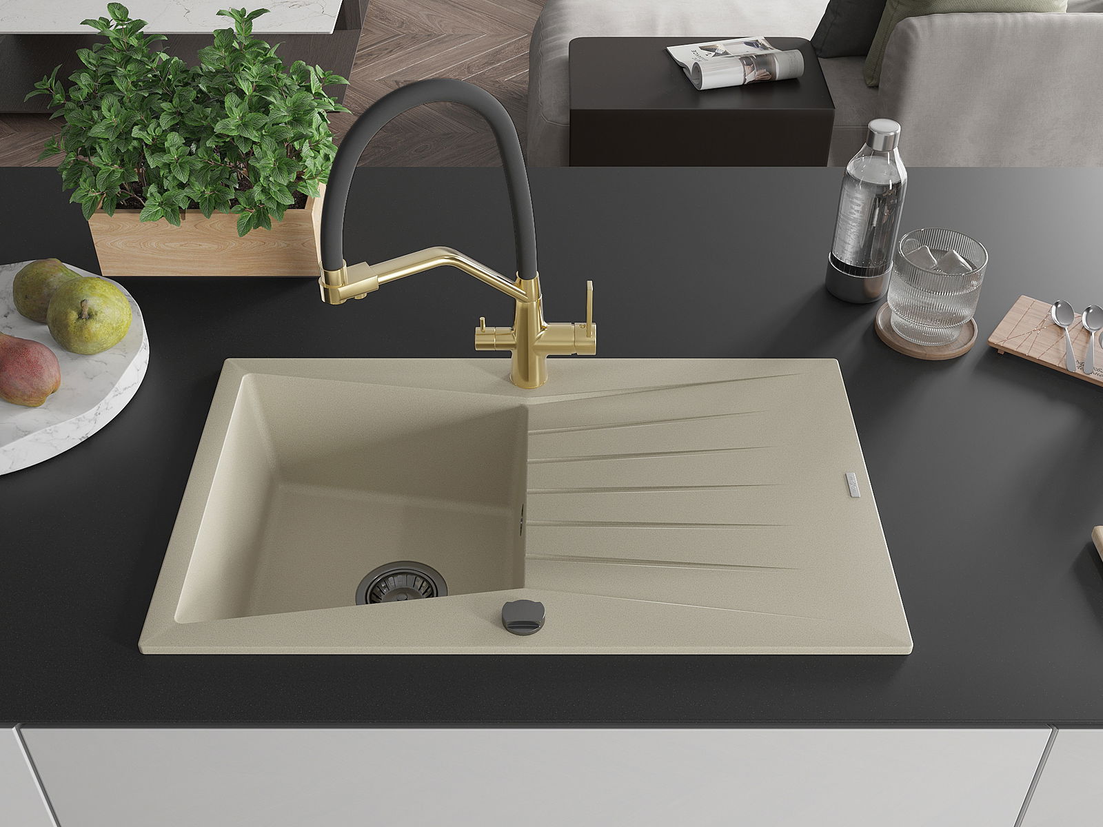 The sink is made from high-quality granite. It serves as an elegant and, above all, practical addition to any kitchen, regardless of its style. The high quality and durability of granite ensure many years of use.