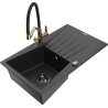 Mexen Cesar 1-bowl granite kitchen sink with drainer and Duo tap, black/gold metallic - 6514-75-671701-57-G