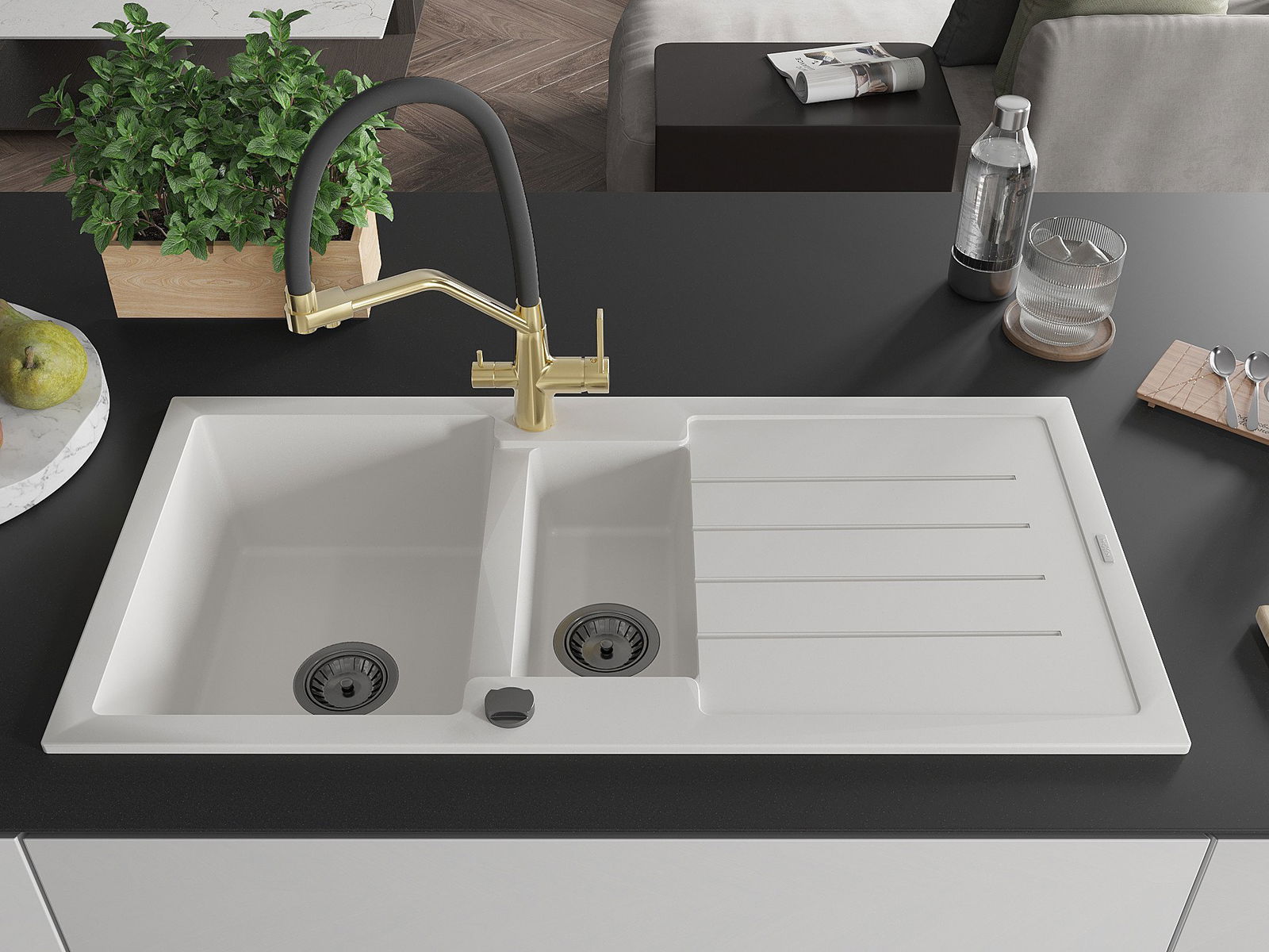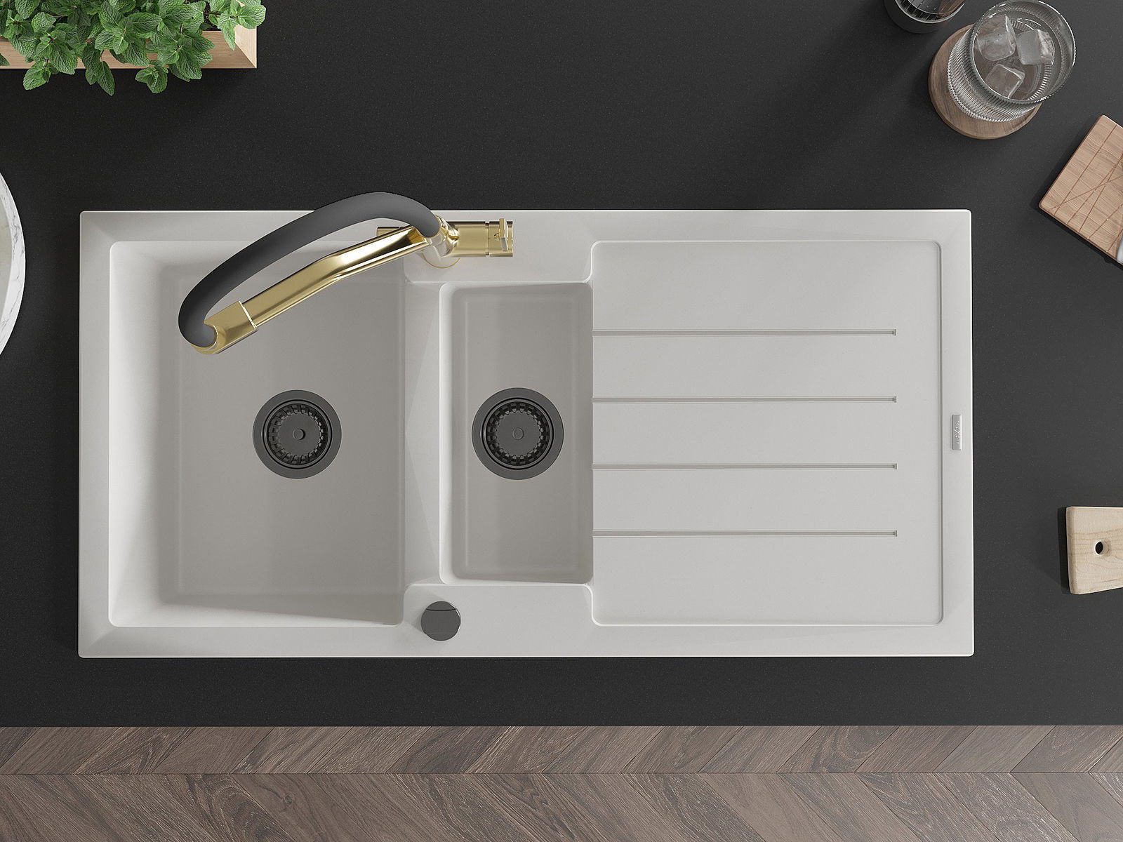 The sink is made of high quality granite. It is an elegant and, above all, practical complement to every kitchen, regardless of its style. High quality and granite durability ensure many years of use.