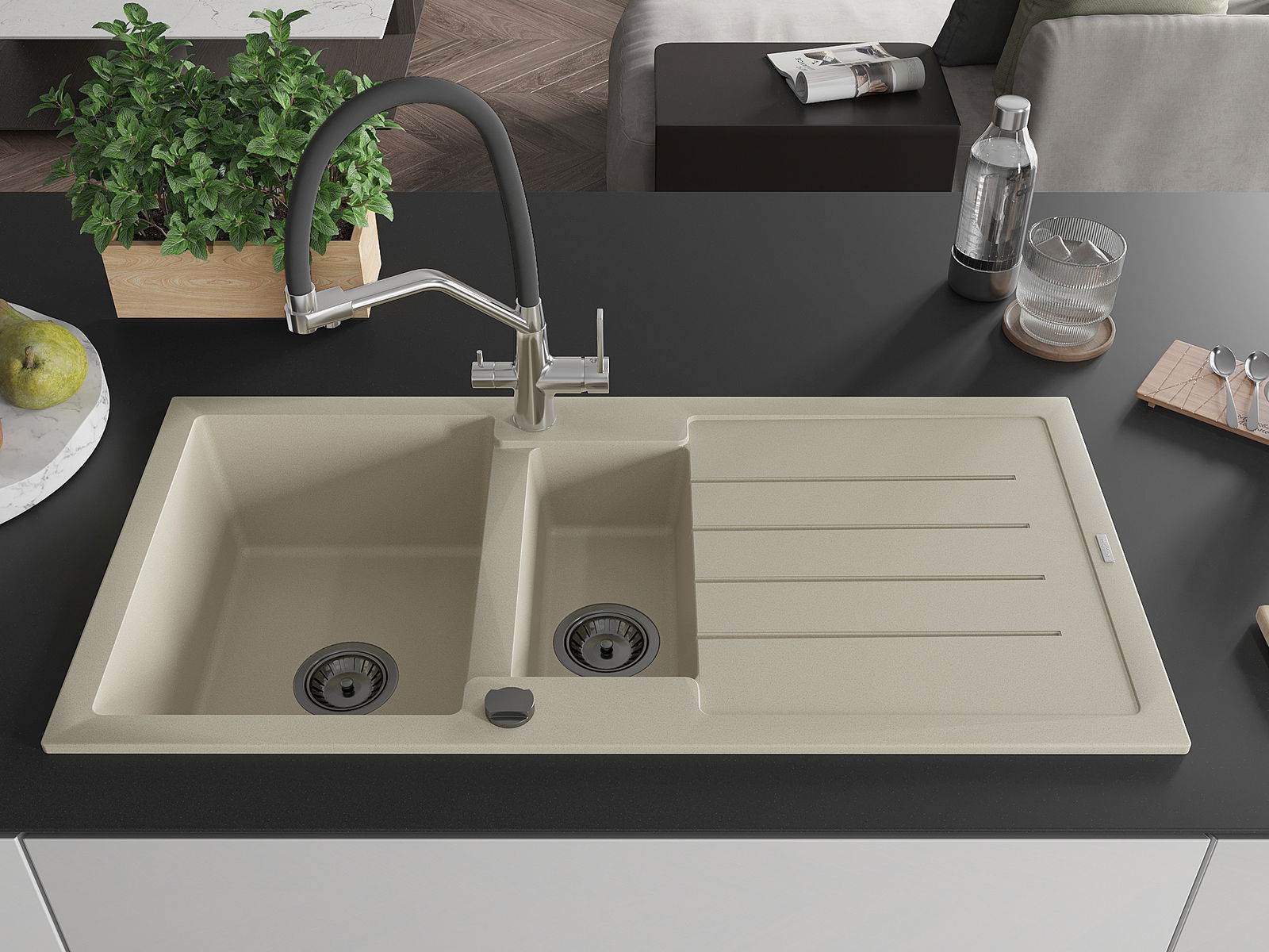 The sink is made of high quality granite. It is an elegant and, above all, practical complement to every kitchen, regardless of its style. High quality and granite durability ensure many years of use.