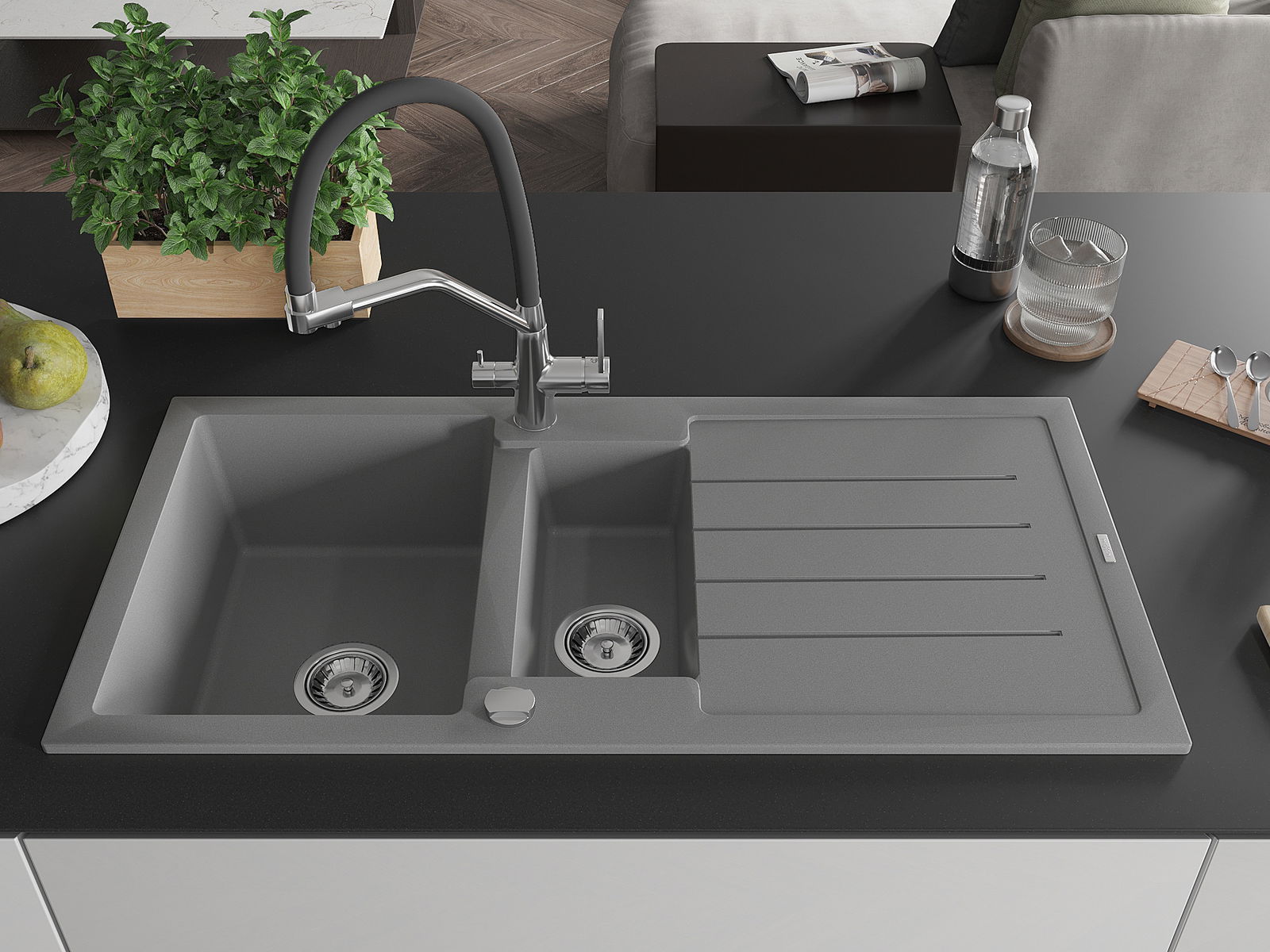The sink is made of high quality granite. It is an elegant and, above all, practical complement to every kitchen, regardless of its style. High quality and granite durability ensure many years of use.