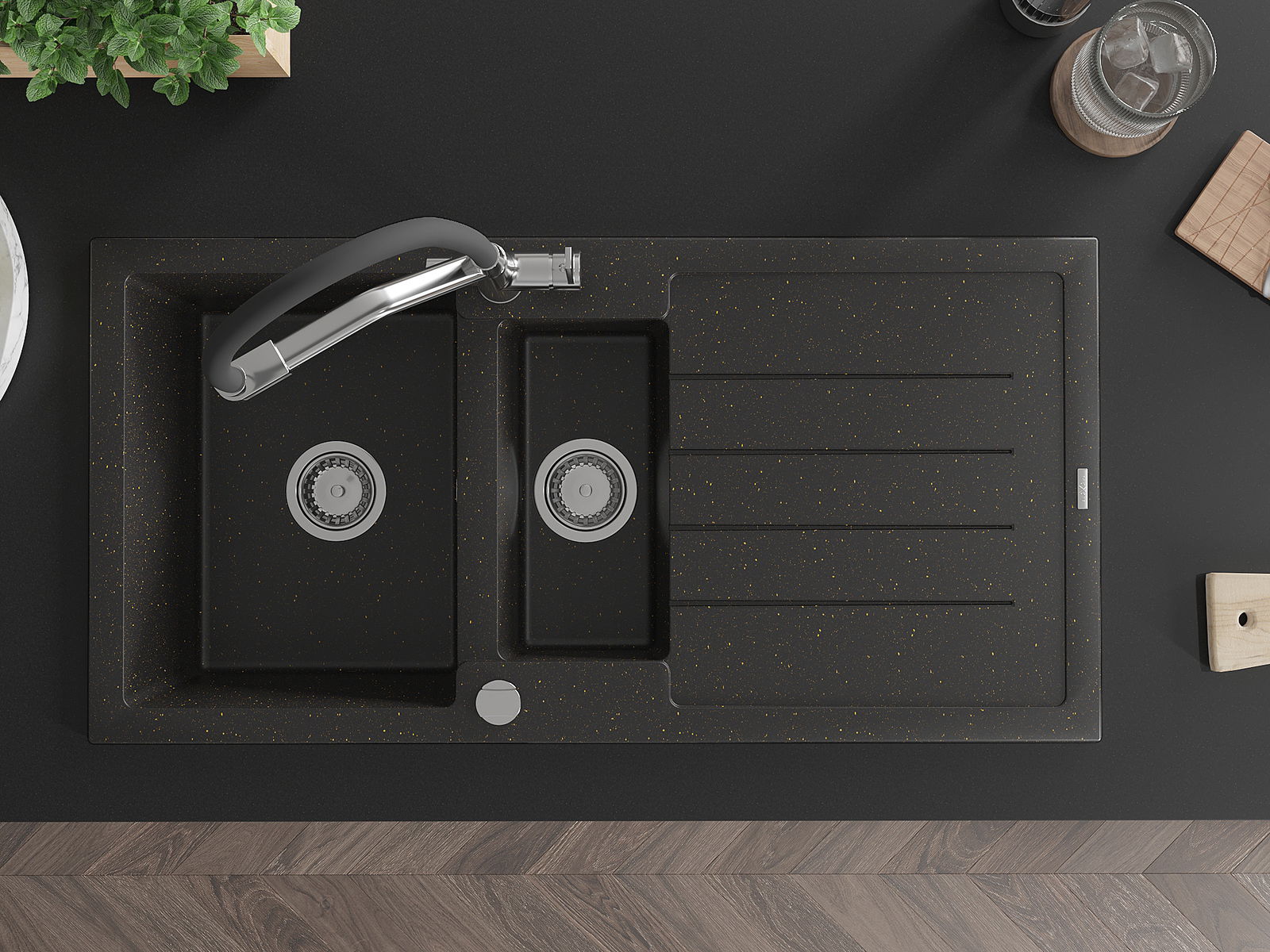 The sink is made of high quality granite. It is an elegant and, above all, practical complement to every kitchen, regardless of its style. High quality and granite durability ensure many years of use.