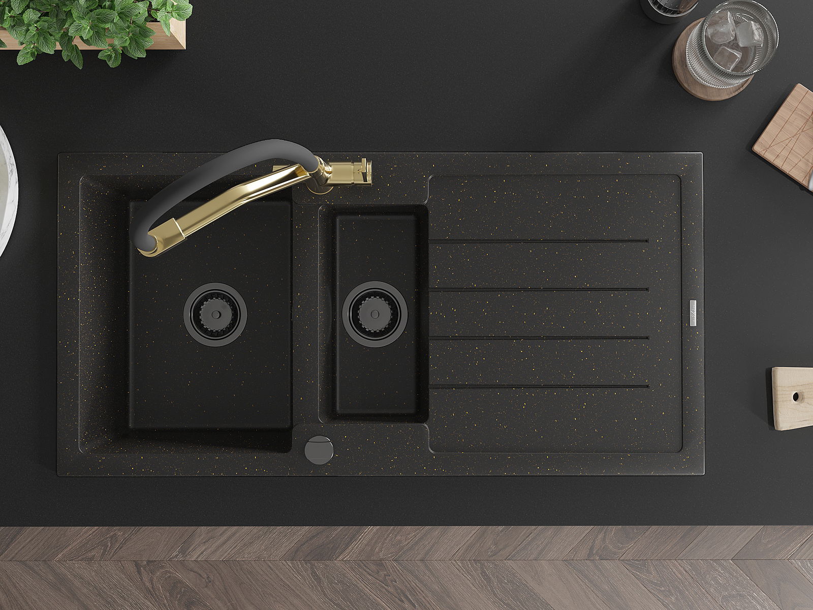 The sink is made of high quality granite. It is an elegant and, above all, practical complement to every kitchen, regardless of its style. High quality and granite durability ensure many years of use.