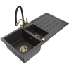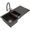 Mexen Andres 1.5-bowl granite sink with drainer and Duo kitchen tap, black - 6515-77-671701-57-G