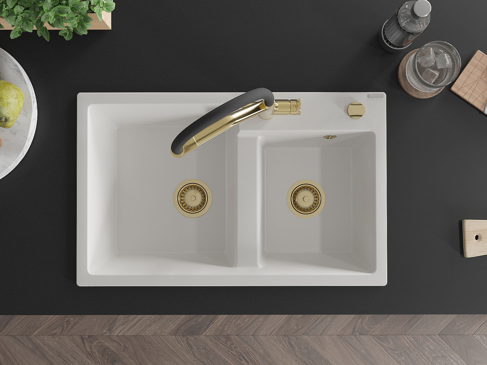 The surface of the sink is resistant to stains and discolouration, making it easy to maintain cleanliness and retain its colour for a long time of use. An aesthetic and practical addition to any kitchen.