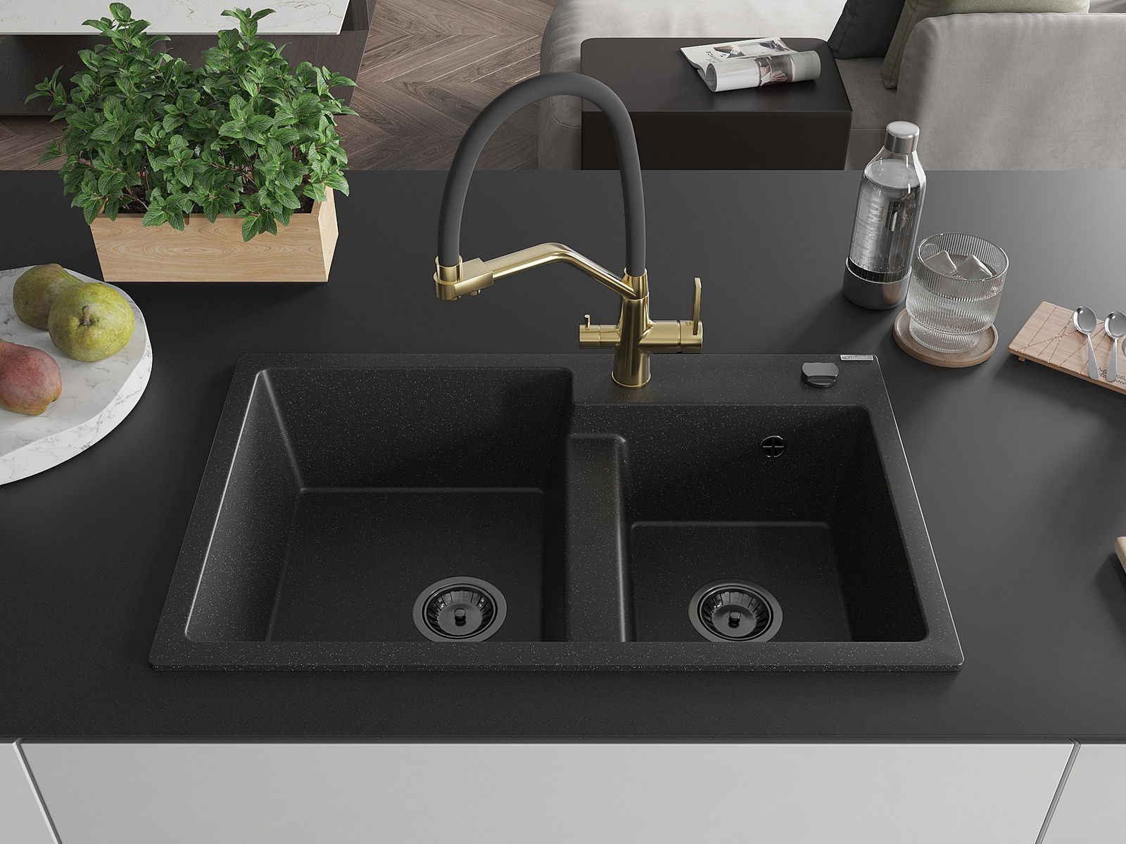 The sink is made from high-quality granite. It serves as an elegant and, above all, practical addition to any kitchen, regardless of its style. The high quality and durability of granite ensure many years of use.