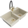 Mexen Tomas granite sink with two bowls and Duo kitchen tap, black/gold metallic - 6516-75-671701-57-G