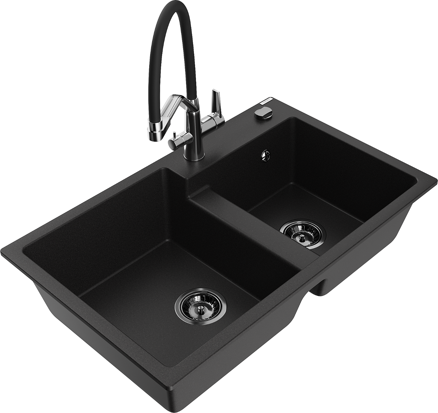 Mexen Tomas granite sink 2-bowl with Duo kitchen tap, black - 6516-77-671701-07-B