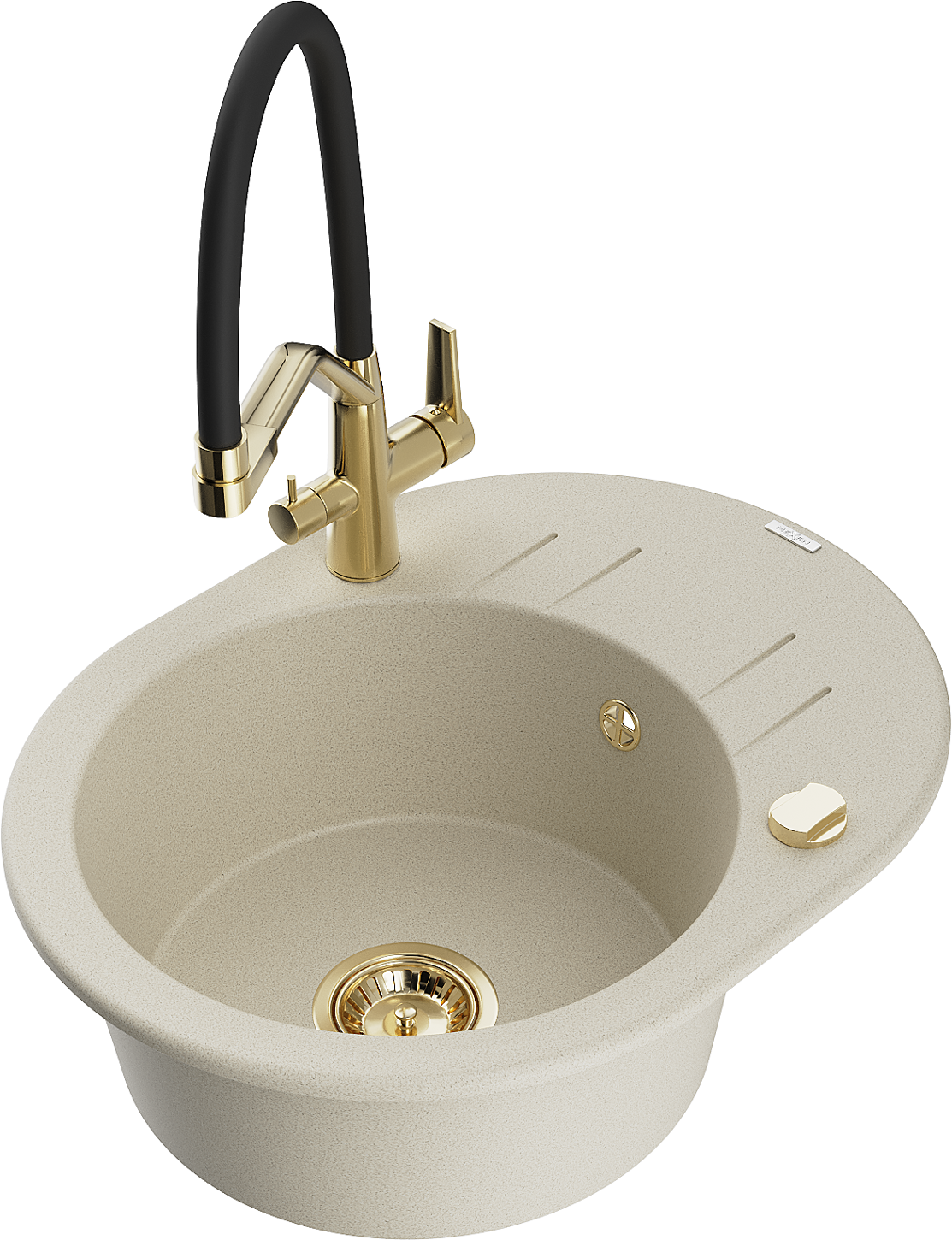 Mexen Kevin 1-bowl granite sink with Duo kitchen tap, beige - 6517-69-671701-57-G
