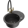 Mexen Kevin 1-bowl granite sink with Duo kitchen tap, black/silver metallic - 6517-73-671701-57-B