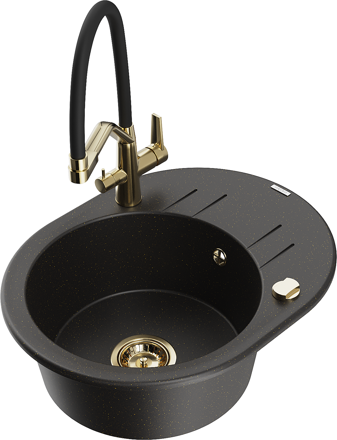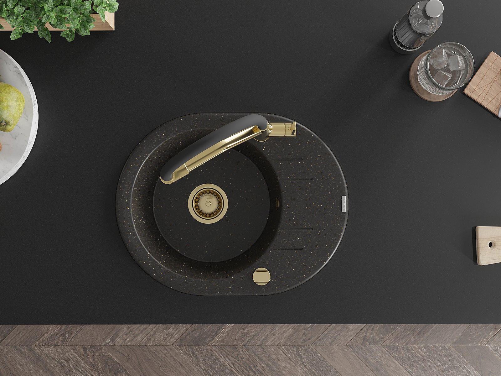 Mexen Kevin 1-bowl granite sink with Duo kitchen tap, black/gold metallic - 6517-75-671701-57-G