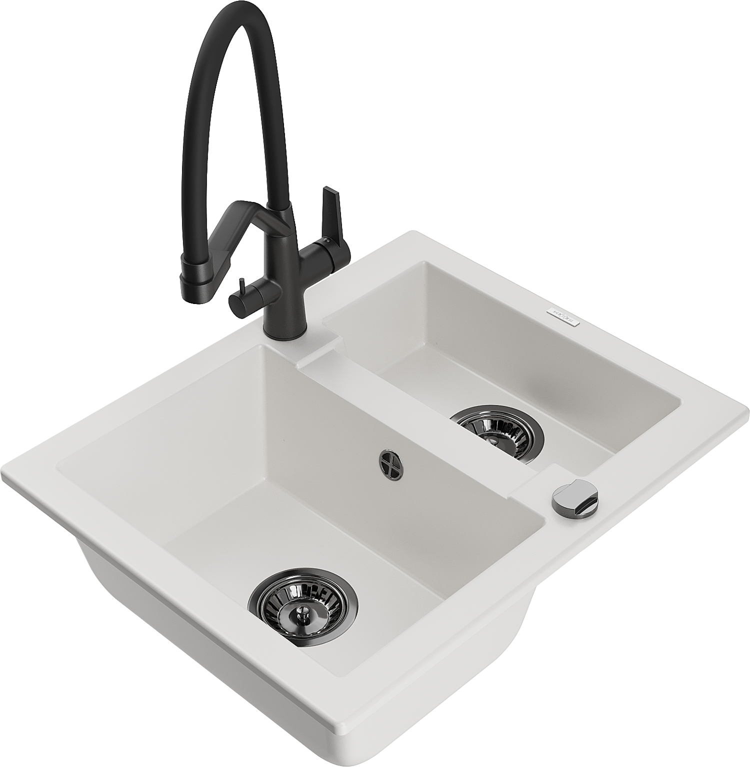 Mexen Carlos 1.5-bowl granite kitchen sink with Duo mixer tap, white - 6518-20-671701-70-B