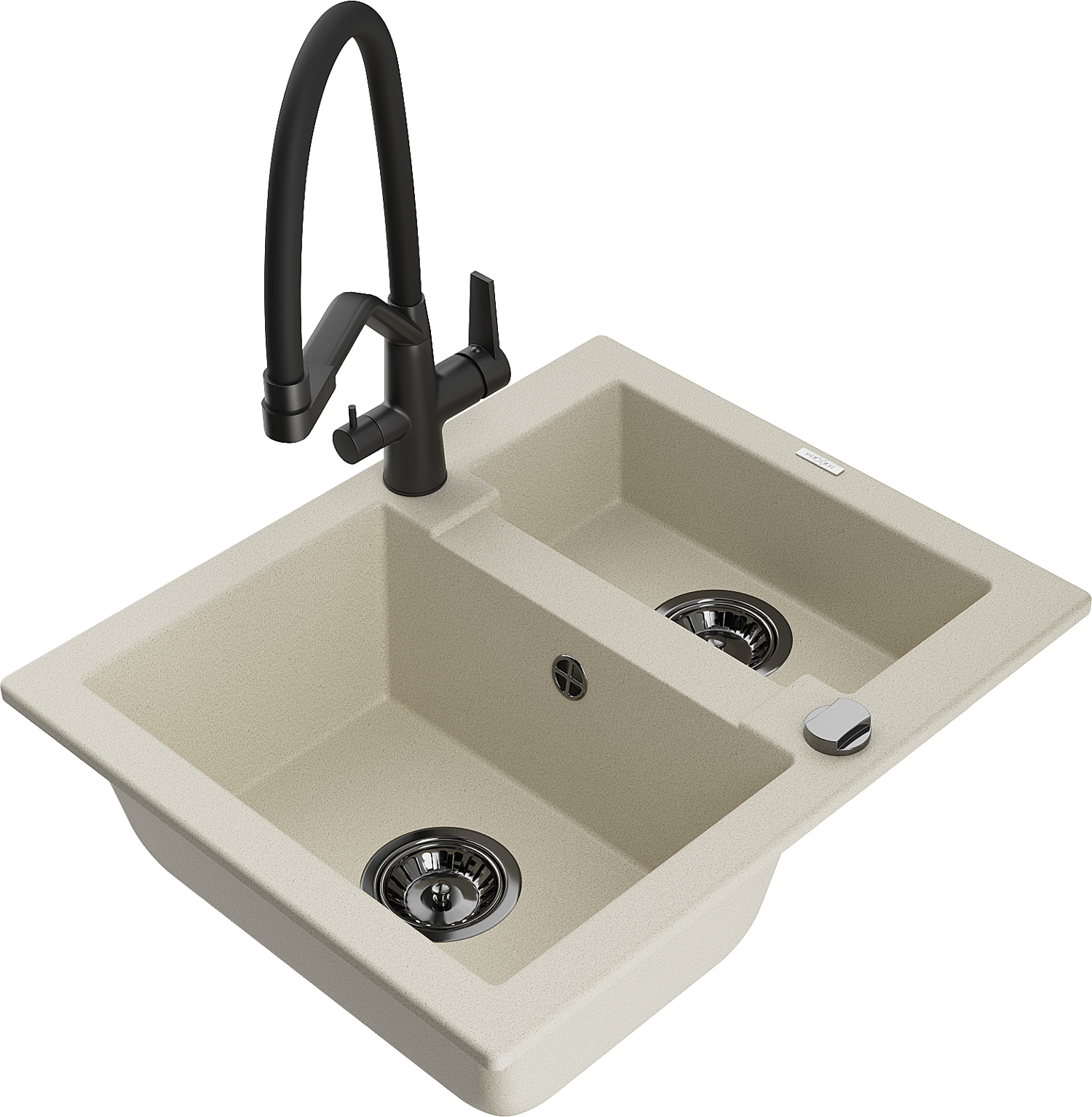 Mexen Carlos 1.5-bowl granite sink with Duo kitchen tap, beige - 6518-69-671701-70-B