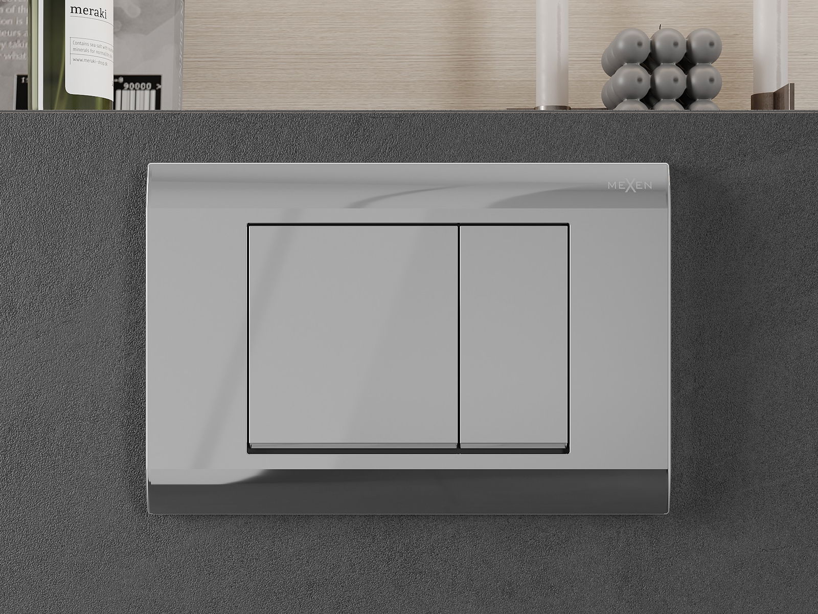 The button fits the frame from the Mexen Fenix Slim series, in which it is possible to install from the front. A popular and practical solution especially in bathrooms, where access to the button from the front is more comfortable.
