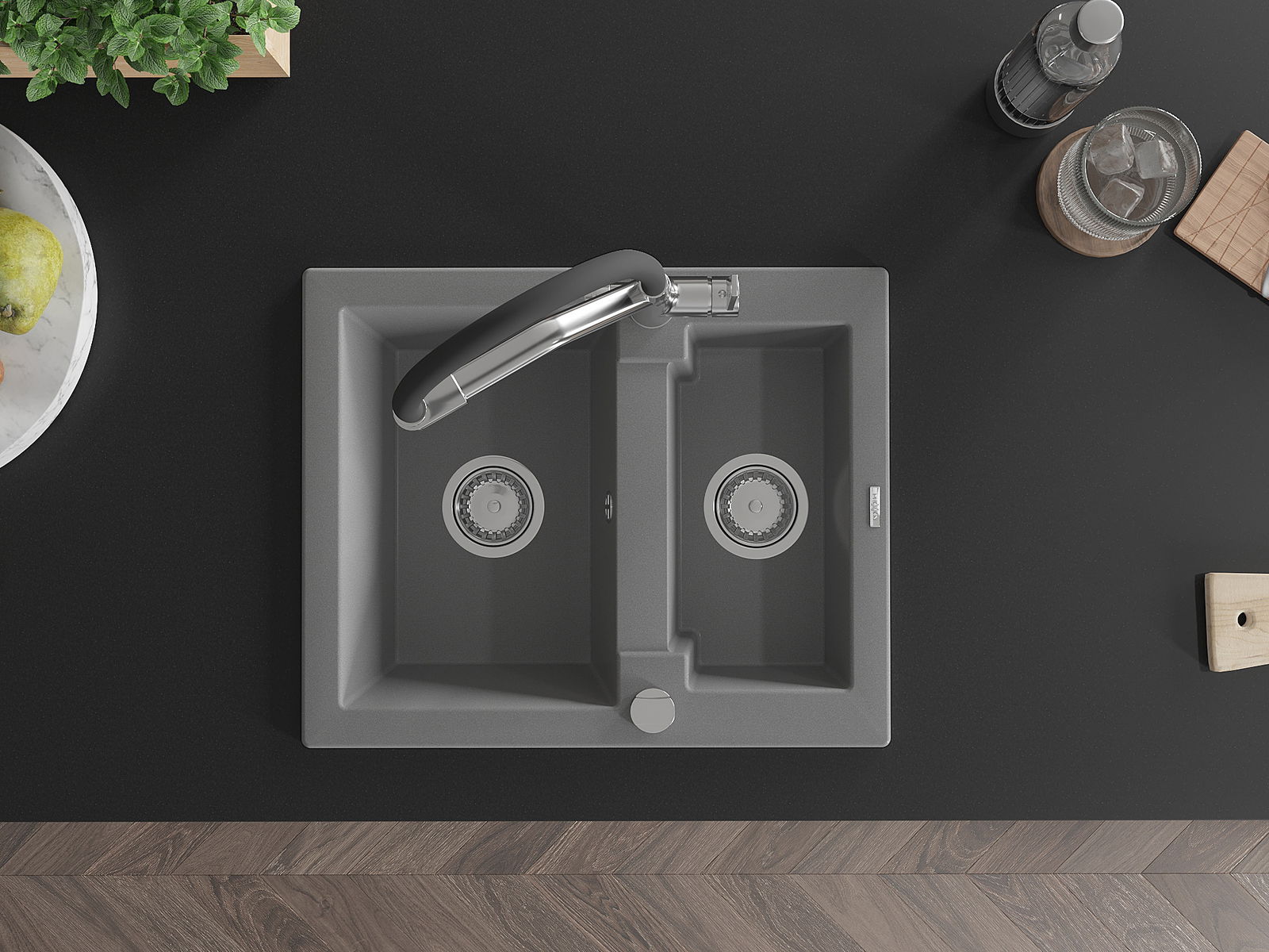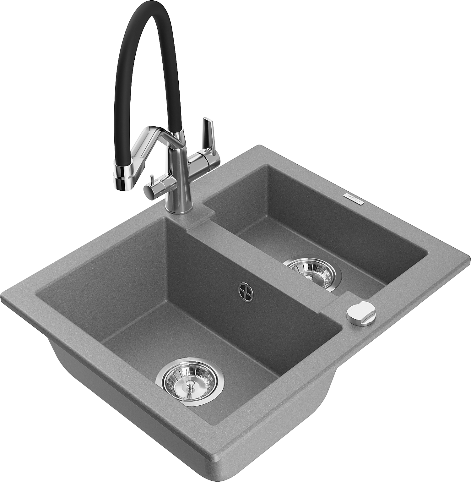 Mexen Carlos granite sink 1.5-bowl with Duo kitchen tap, grey - 6518-71-671701-07