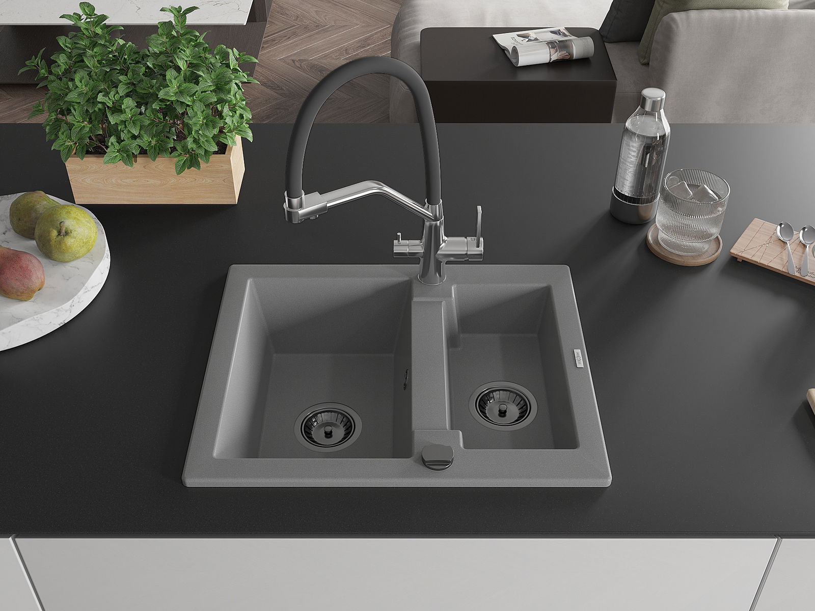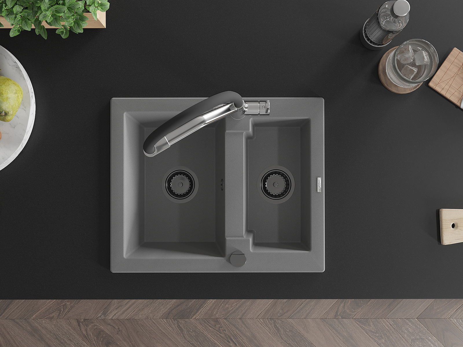 Mexen Carlos granite sink 1.5-bowl with Duo kitchen tap, grey - 6518-71-671701-07-B