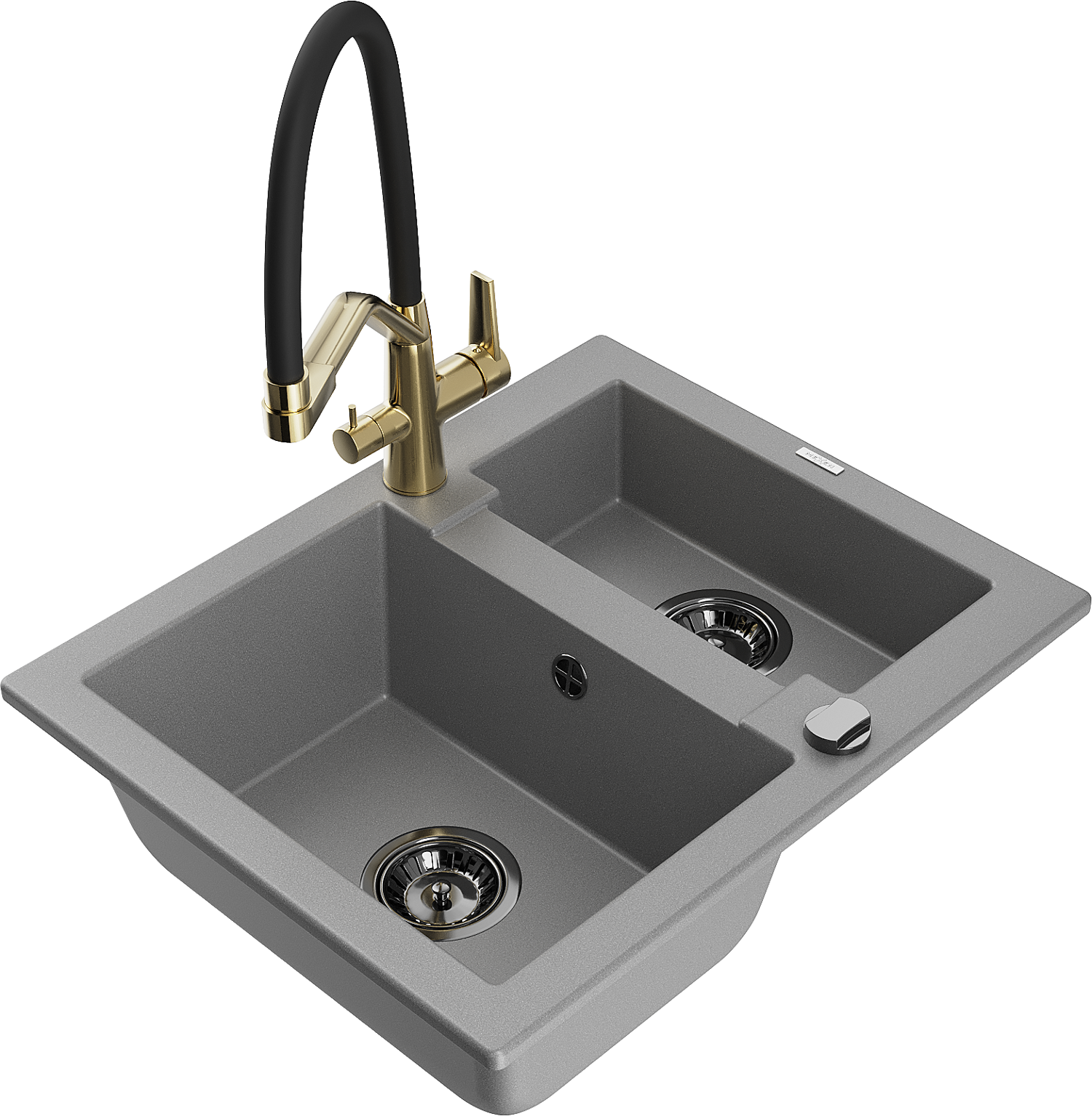 Mexen Carlos granite sink 1.5-bowl with Duo kitchen tap, grey - 6518-71-671701-57-B