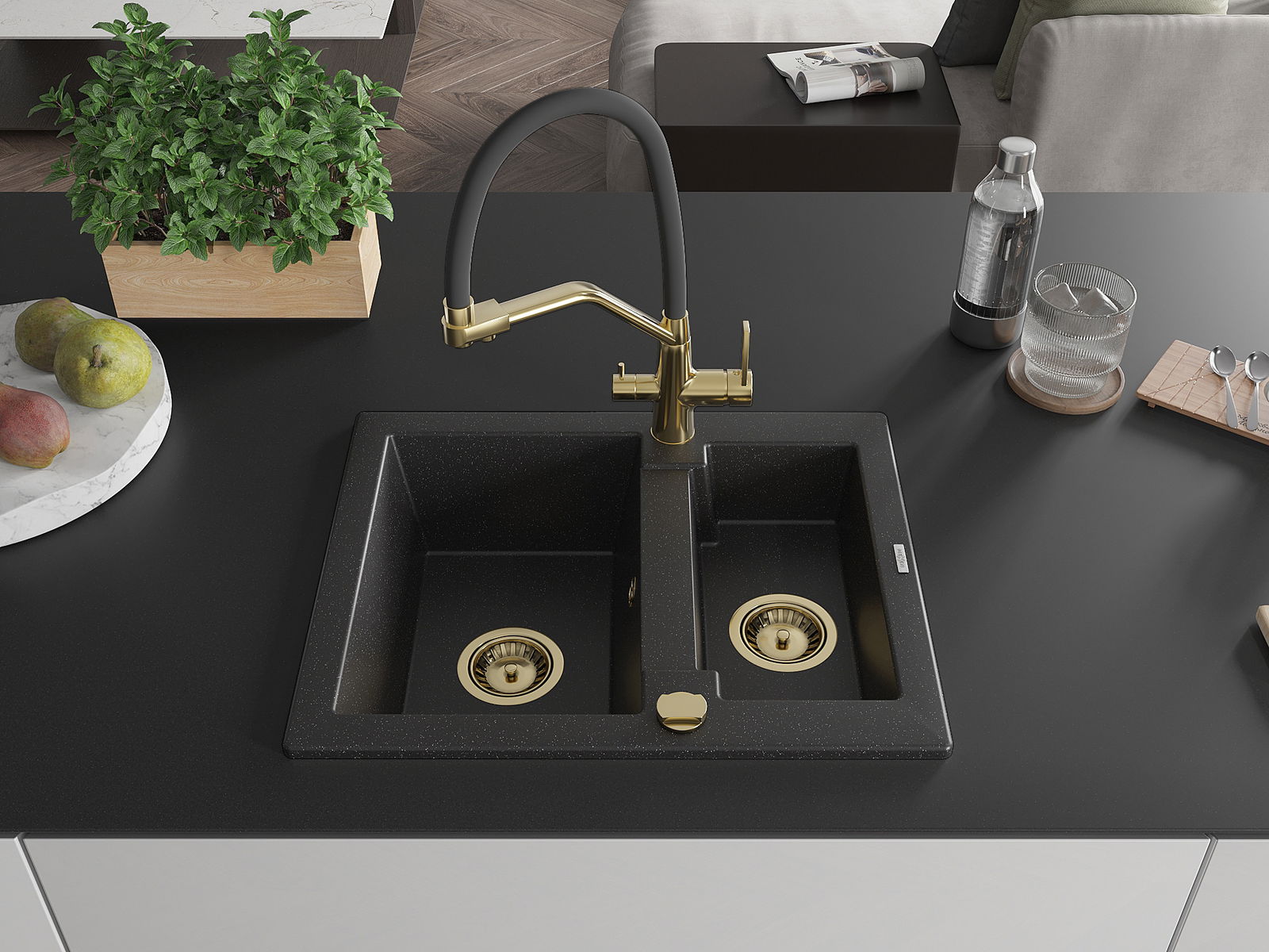 The sink is made of high quality granite. It is an elegant and, above all, practical complement to every kitchen, regardless of its style. High quality and granite durability ensure many years of use.