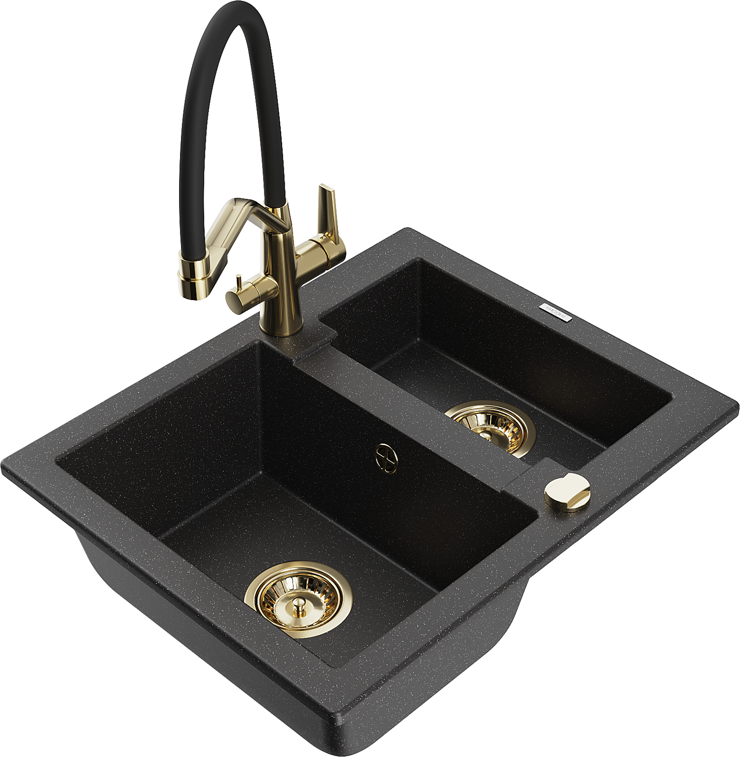 Mexen Carlos granite sink 1.5-bowl with Duo kitchen tap, black/silver metallic - 6518-73-671701-57-G