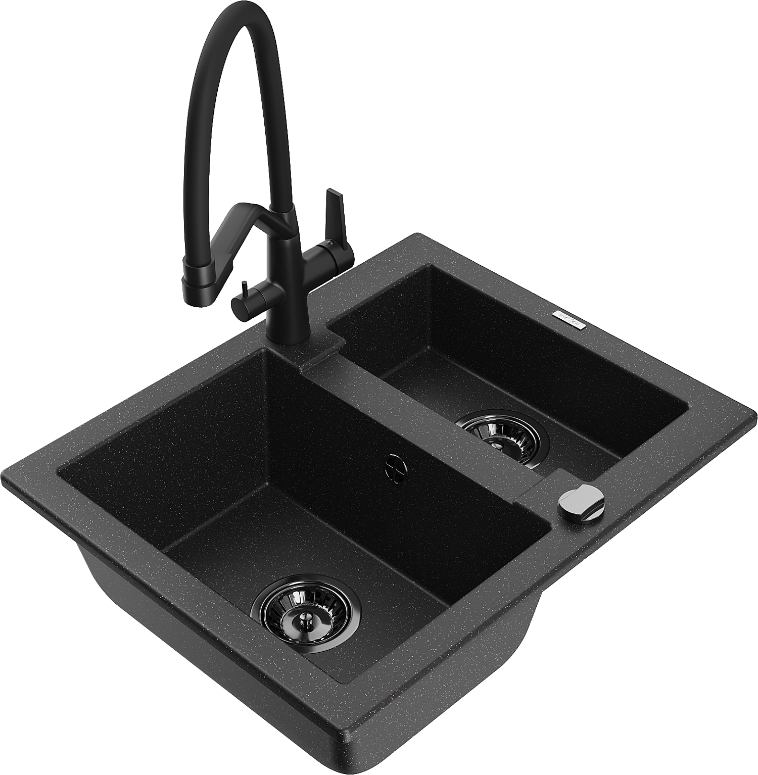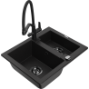 Mexen Carlos granite sink 1.5-bowl with Duo kitchen tap, black/silver metallic - 6518-73-671701-70-B