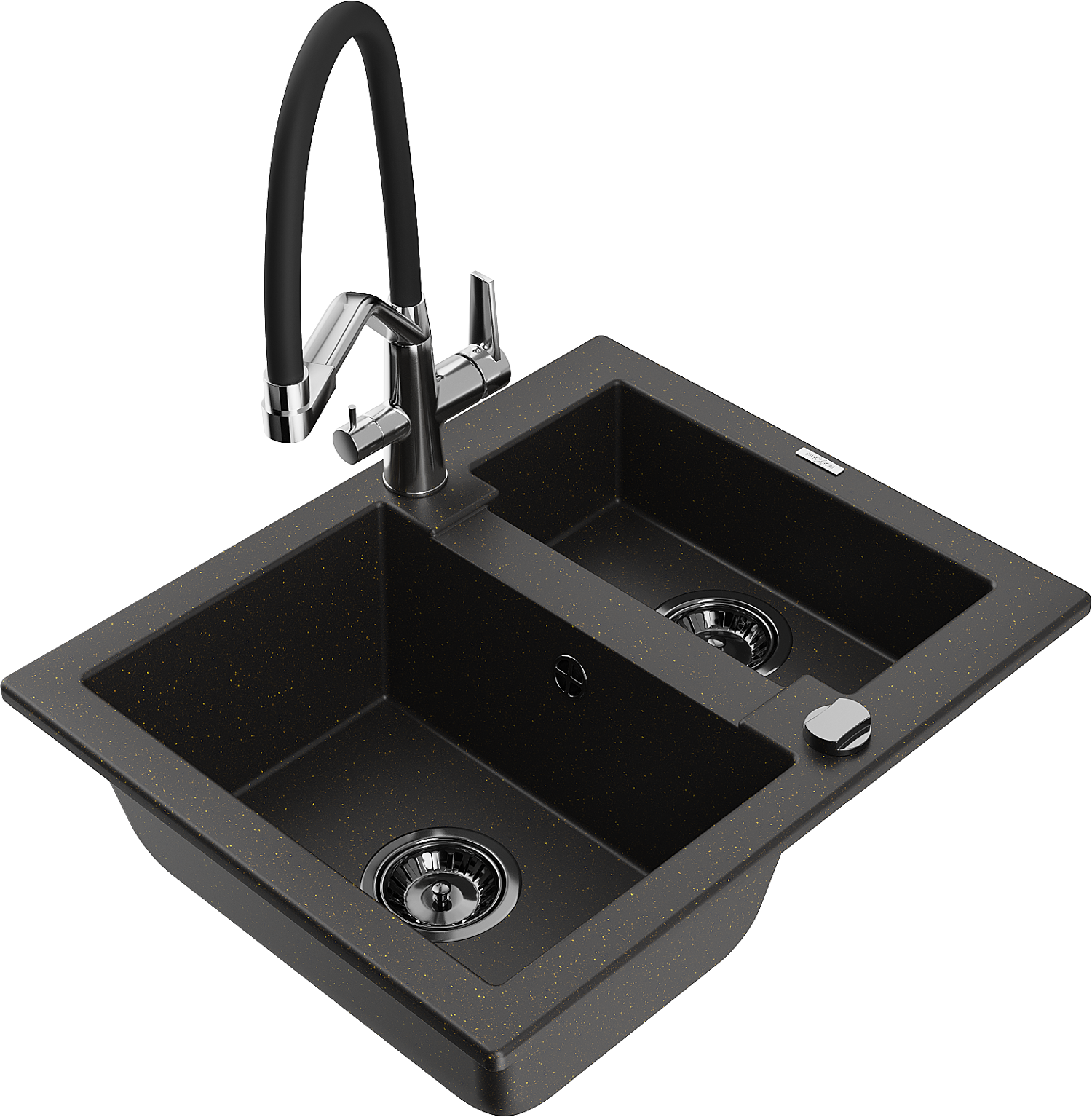 Mexen Carlos granite sink 1.5-bowl with Duo kitchen tap, black/gold metallic - 6518-75-671701-07-B