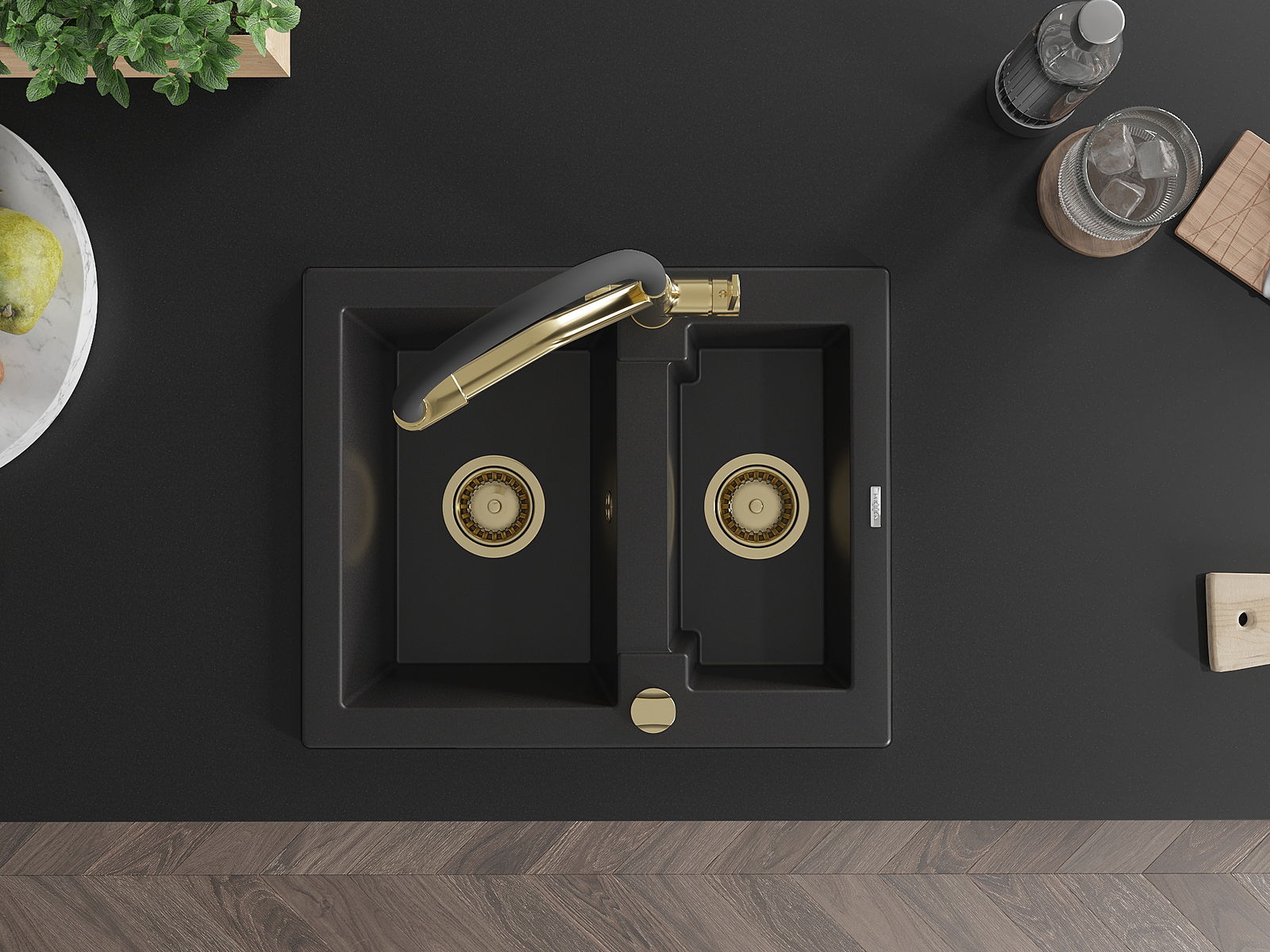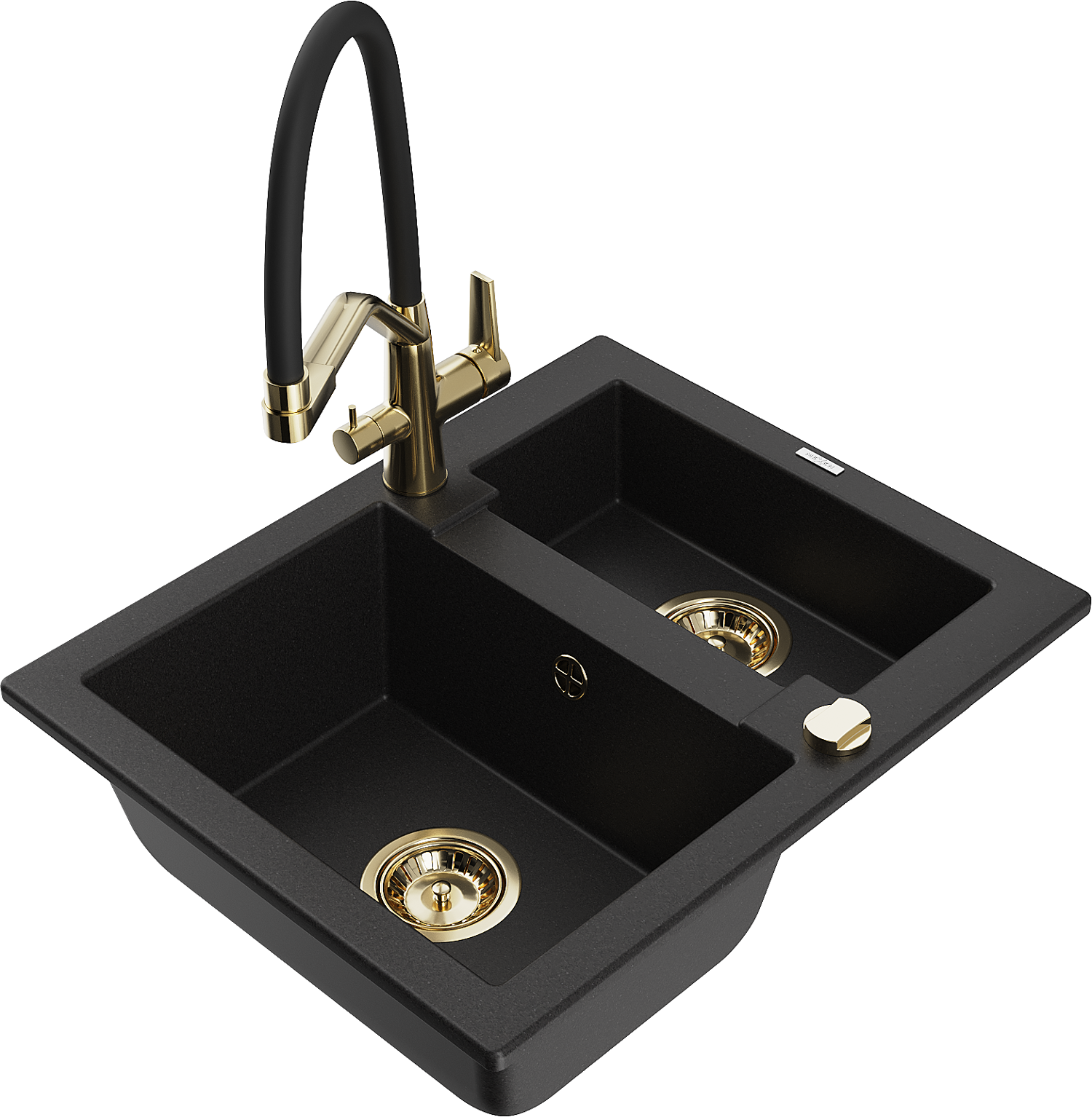 Mexen Carlos granite sink 1.5-bowl with Duo kitchen tap, black - 6518-77-671701-57-G