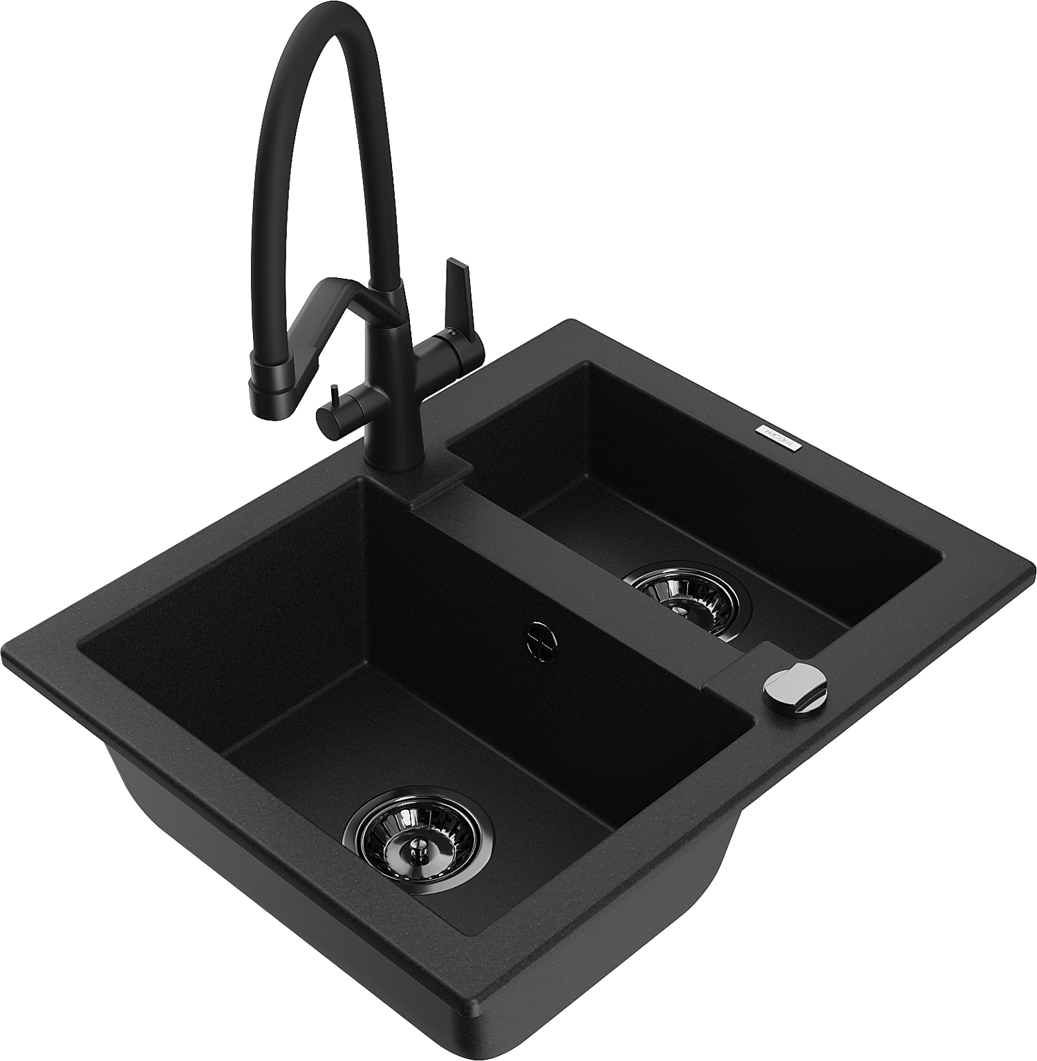 Mexen Carlos 1.5-bowl granite sink with Duo kitchen tap, black - 6518-77-671701-70-B