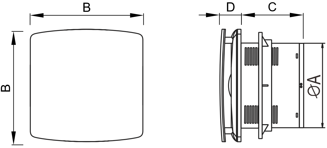 - Timer that allows the fan to continue to operate after it is switched off, in a time range from 30 seconds to 30 minutes depending on the timer setting