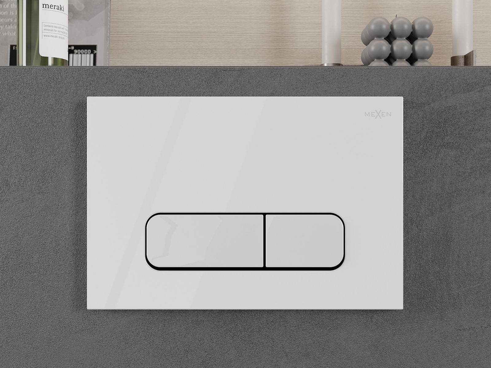 The button fits the frame from the Mexen Fenix Slim series, in which it is possible to install from the front. A popular and practical solution especially in bathrooms, where access to the button from the front is more comfortable.