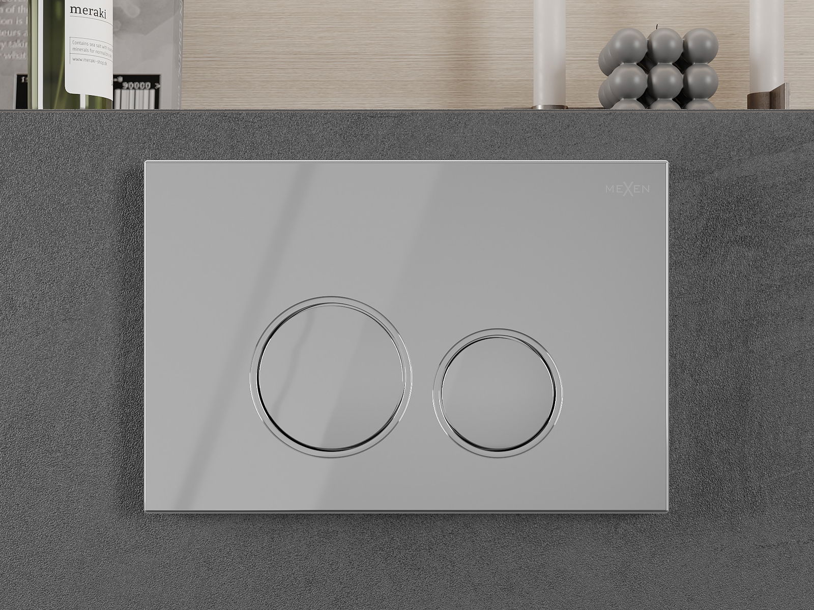 Flushing is activated in the traditional way – pressing the button activates a lever that opens the valve and flushes the water. It is a simple and intuitive solution, commonly found in bathrooms.