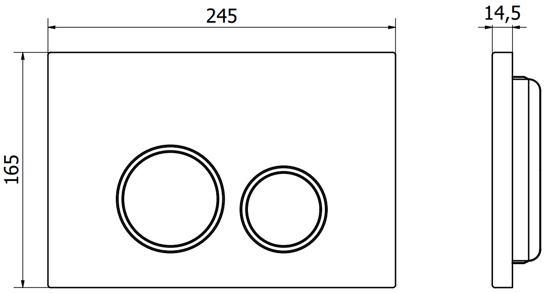 The button is designed for surface-mounted frames where the installation point is located at the front of the structure. This positioning ensures easy access and convenient flushing operation.