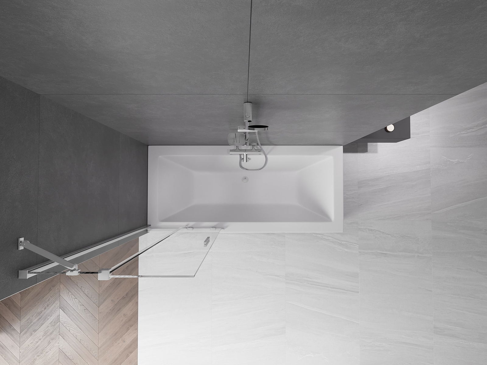 Effective protection against water spilling during bathing. The screen has seals that perfectly fit the glass surface and the edge of the bathtub. A functional solution ensuring safety and easy maintenance of cleanliness.