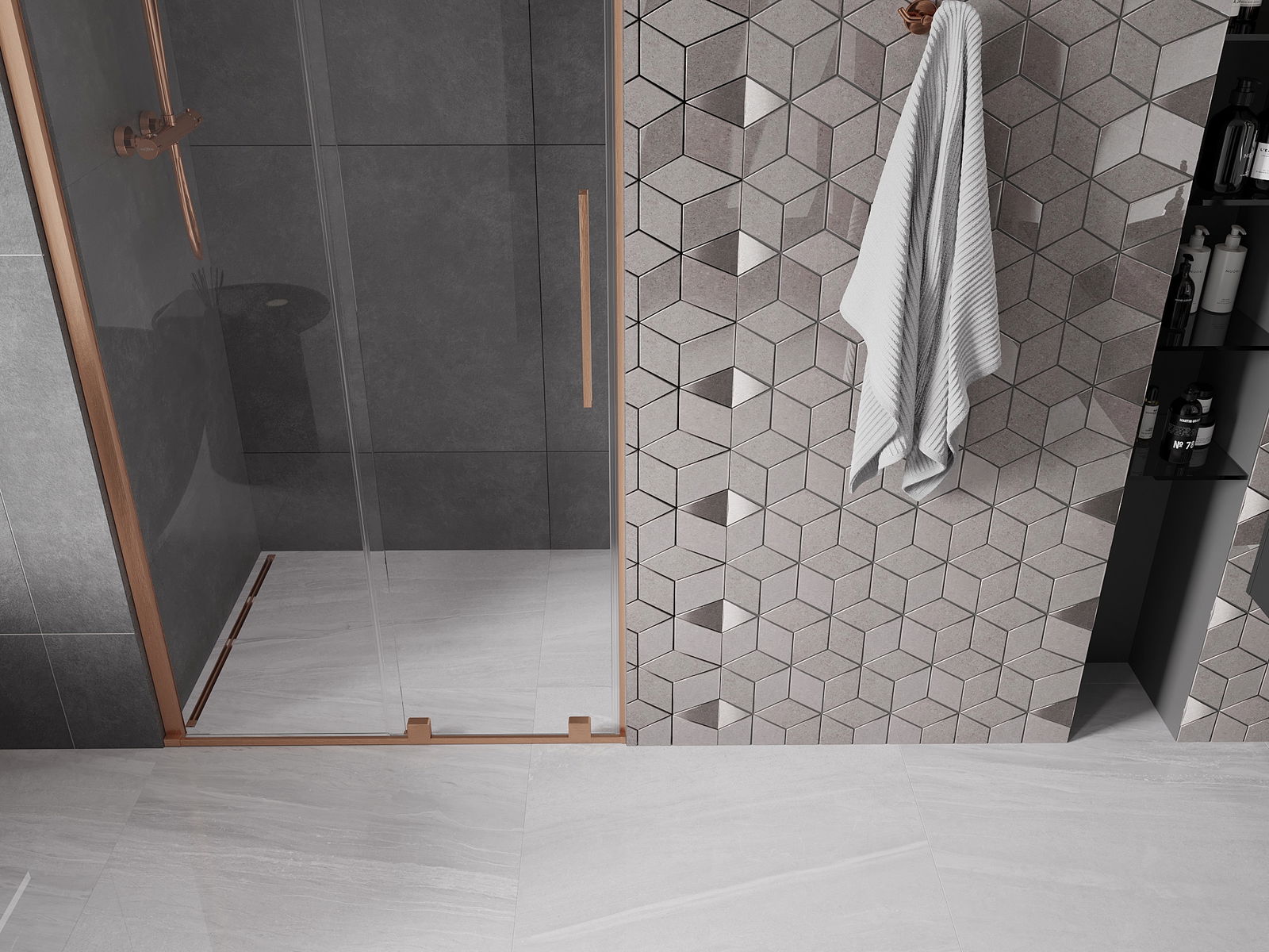 A handy and convenient handle made of stainless steel. The stylish shape combined with a finish that matches the color of the profiles gives a modern and stylish look, highlighting the aesthetics of any bathroom.