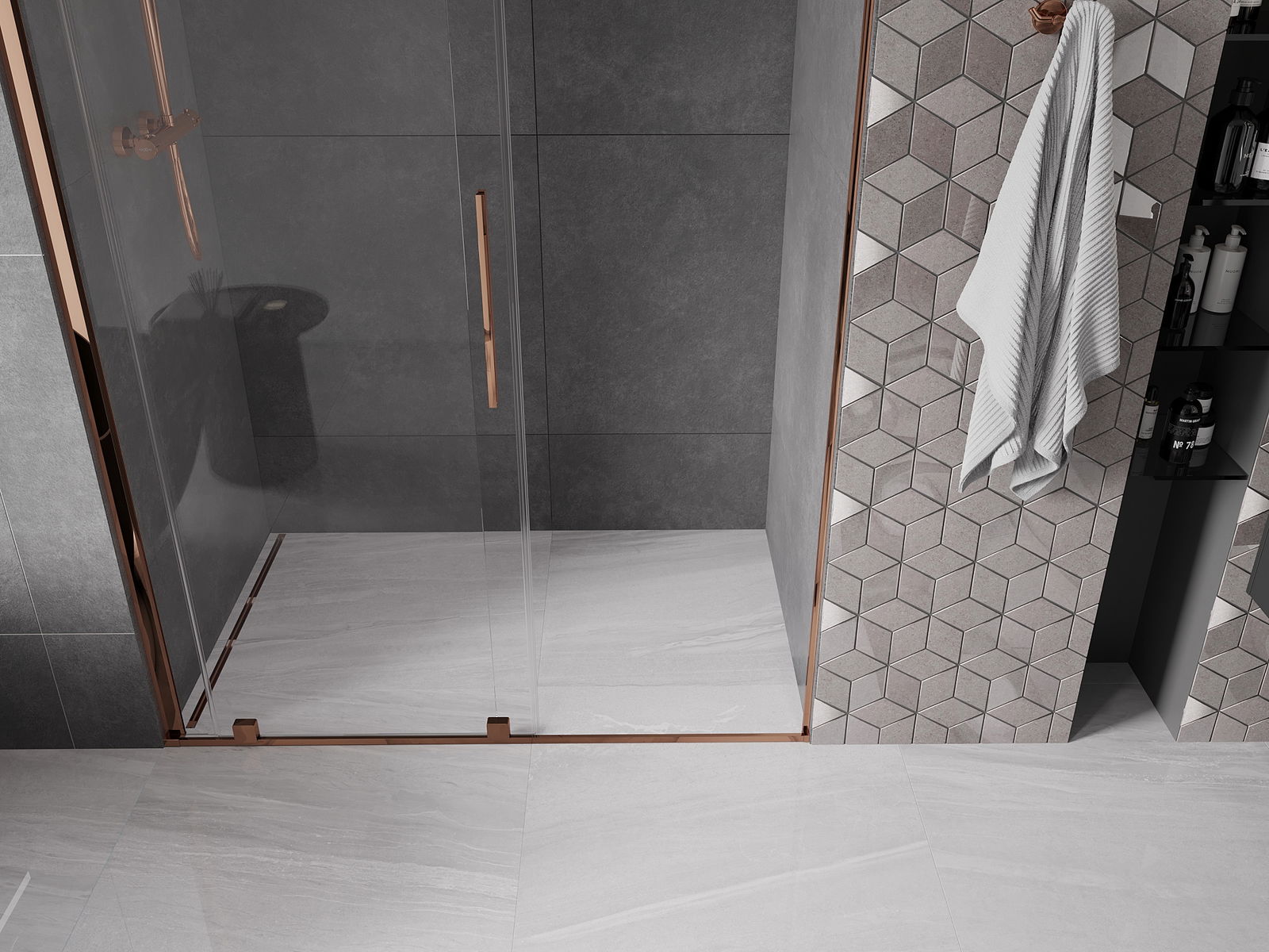 Mexen Velar sliding shower door 140 cm, transparent, pink gold - 871-140-000-01-60