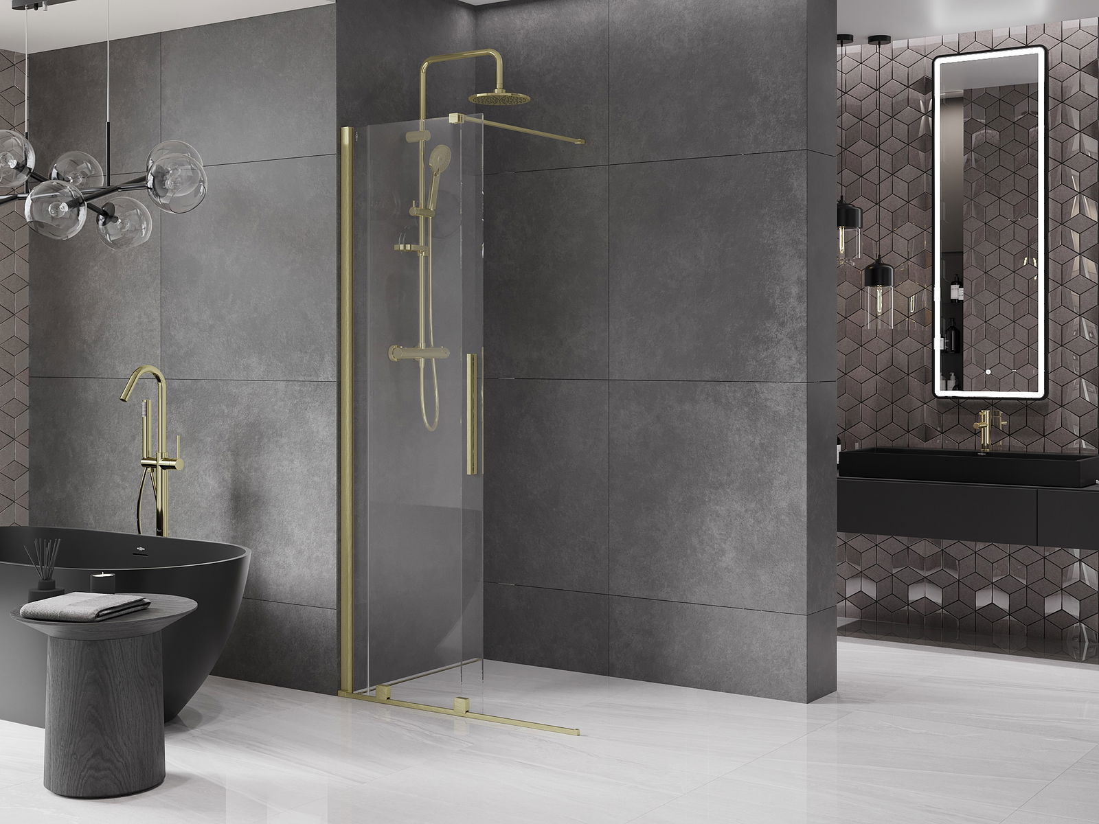 Mexen Velar sliding Walk-in shower screen 80 x 200 cm, transparent 8 mm, brushed gold - 871-080-000-03-55