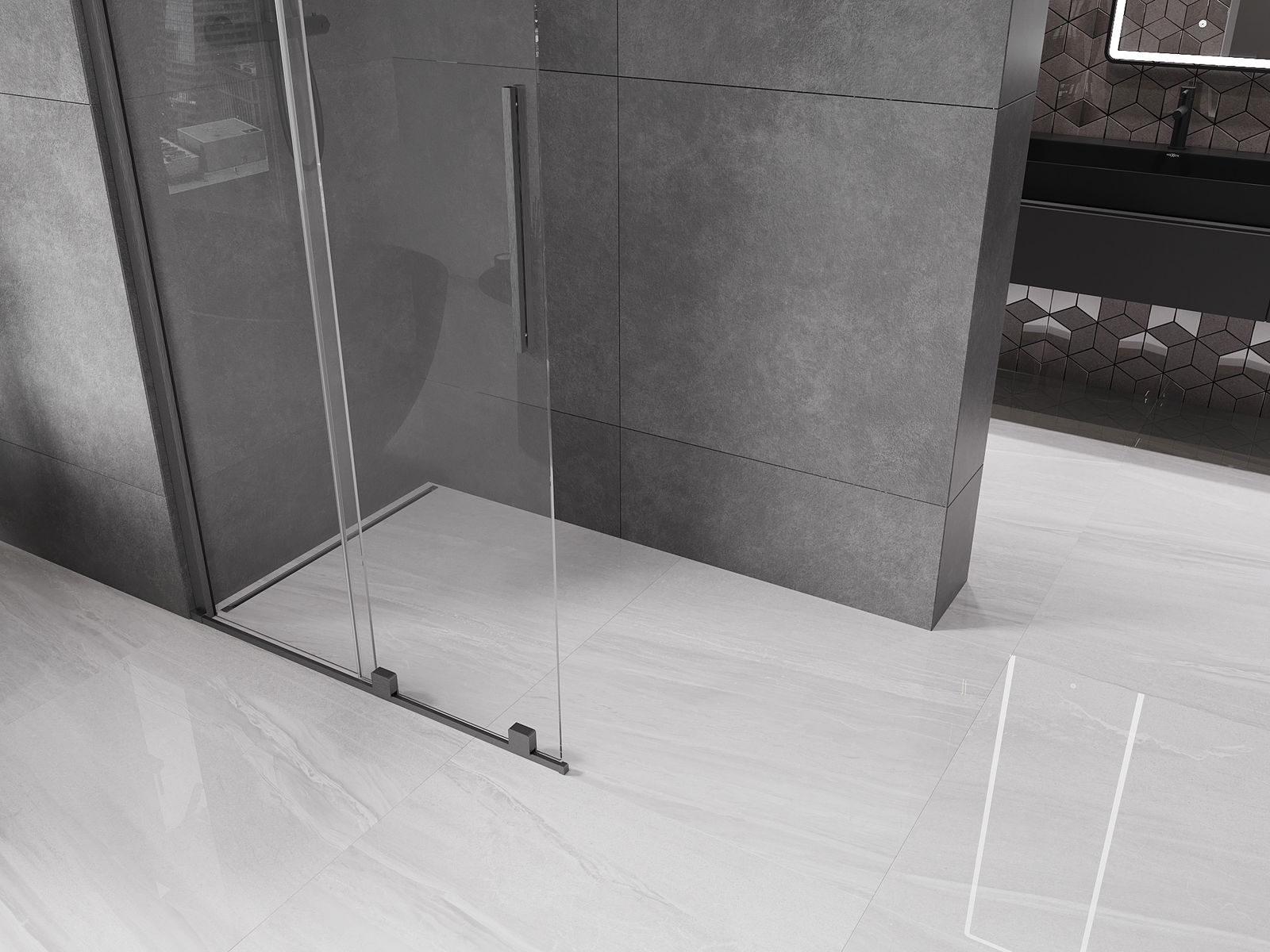 Mexen Velar Walk-in Sliding Shower Wall 80 x 200 cm, Transparent 8 mm, Brushed Gun Grey - 871-080-000-03-66