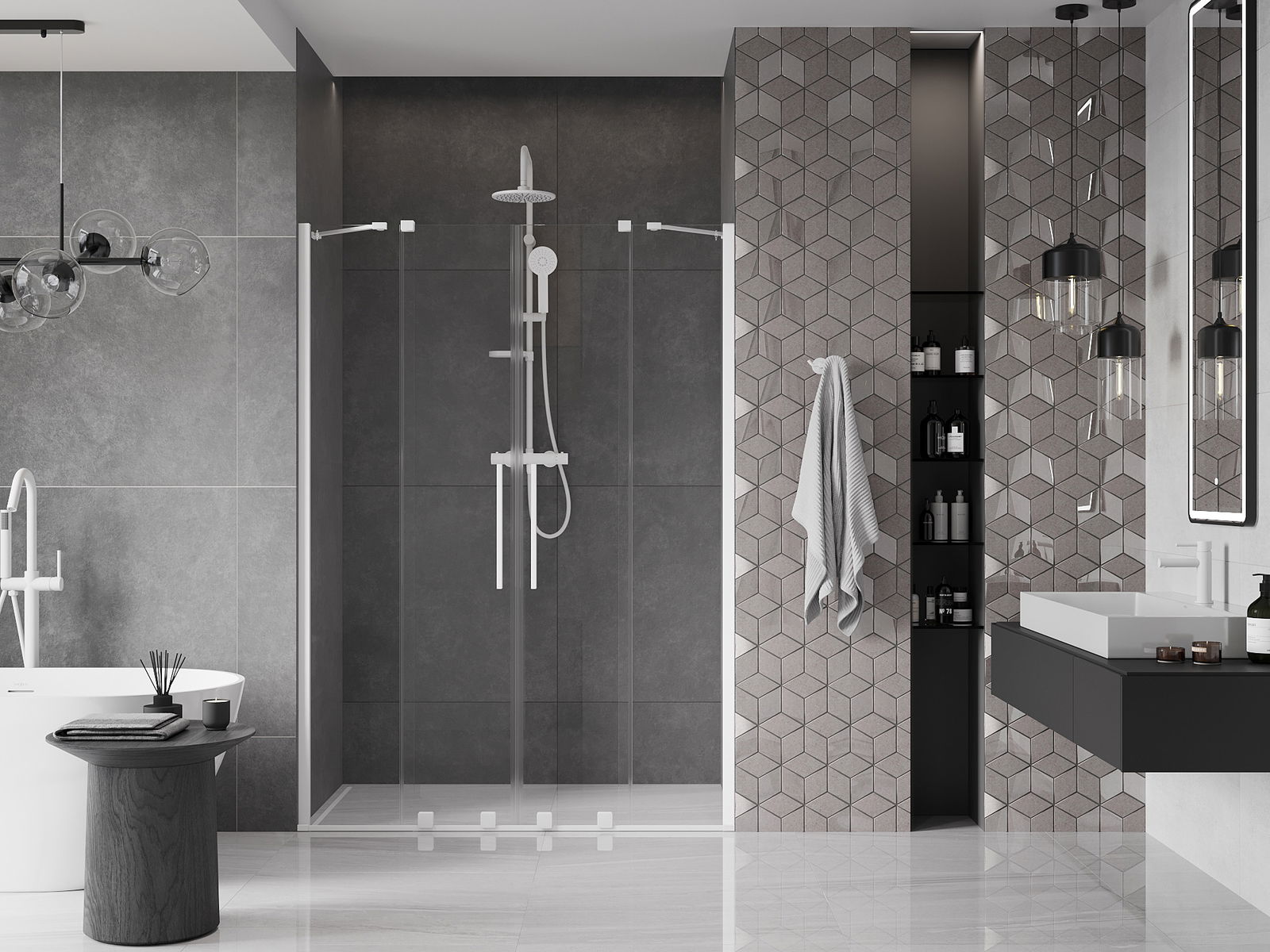 Installing a shower enclosure using a wall profile is a practical solution that allows you to adjust the enclosure to the dimensions of the room. It allows for adjustment and eliminates wall curvature and unevenness.