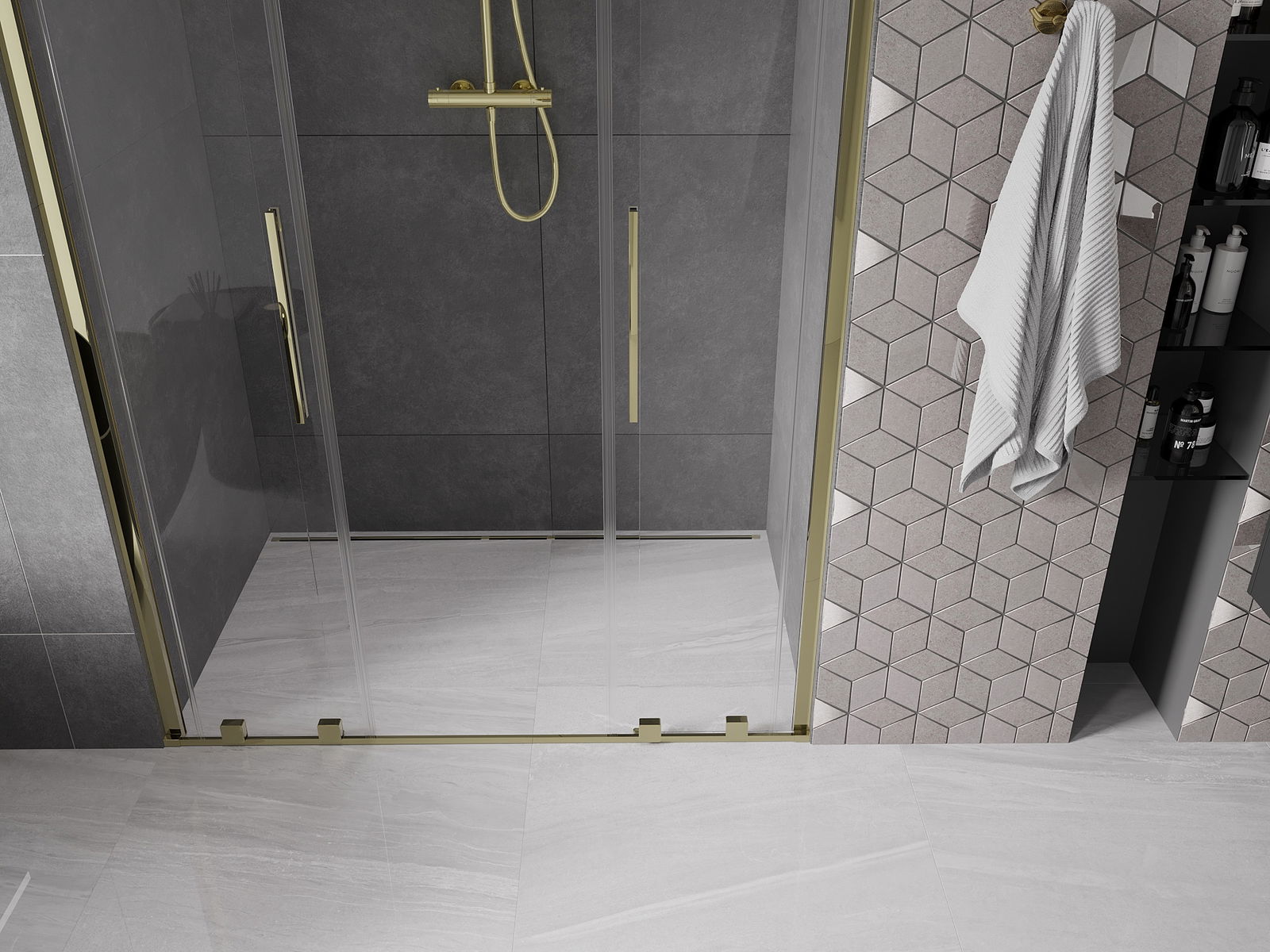 The handy and convenient handle is made of stainless steel. The modern shape combined with the finish matching the colour of the profiles gives the whole a modern and stylish look, emphasising the aesthetics of any bathroom.