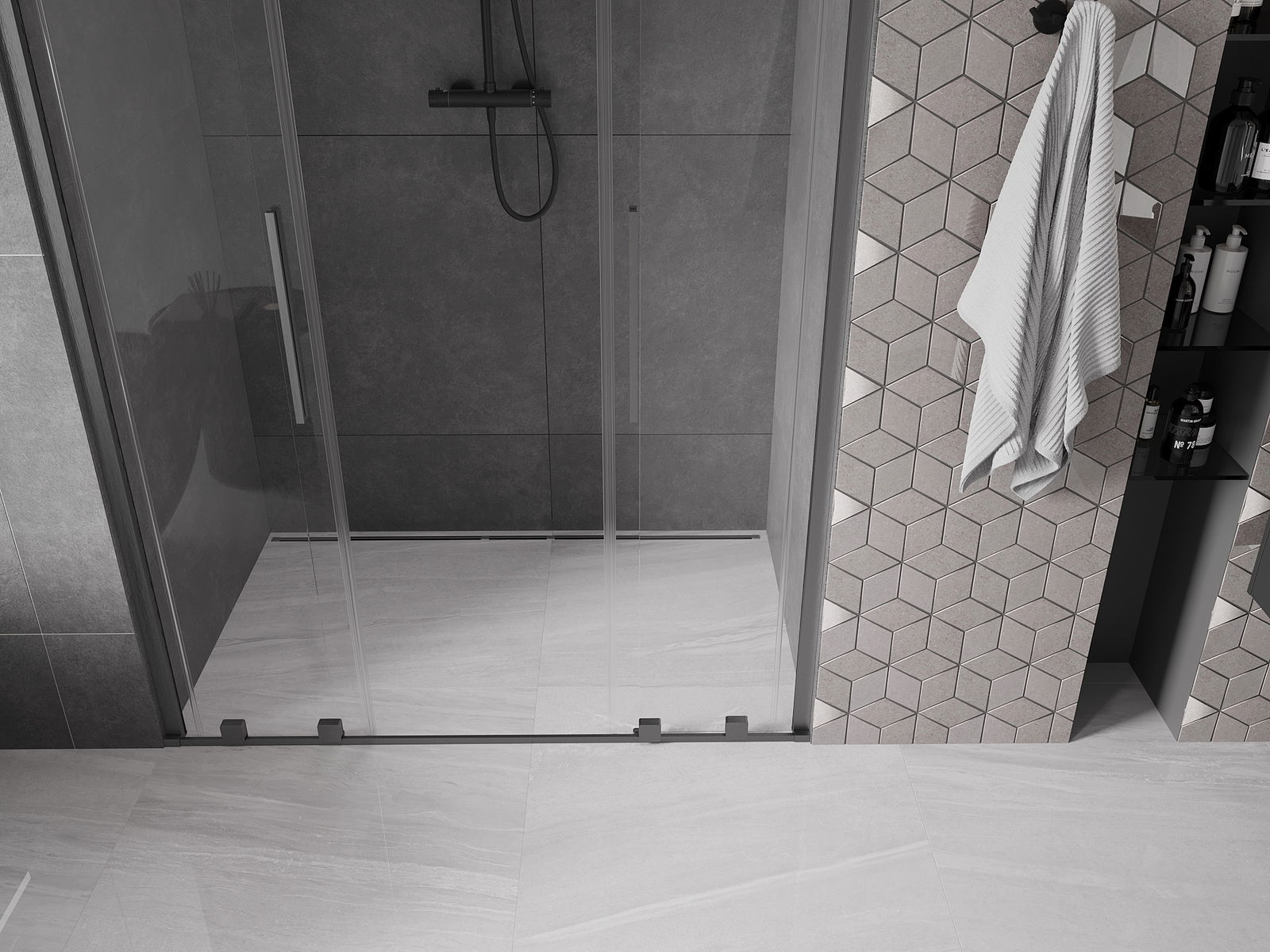 Mexen Velar Duo Sliding Shower Doors 160 cm, Transparent, Brushed Gun Gray - 871-160-000-02-66