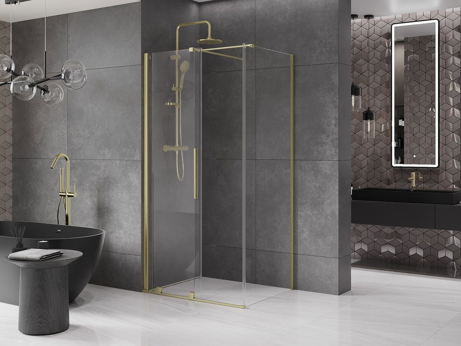 The handy and convenient handle is made of stainless steel. The modern shape combined with the finish matching the colour of the profiles gives the whole a modern and stylish look, emphasising the aesthetics of any bathroom.