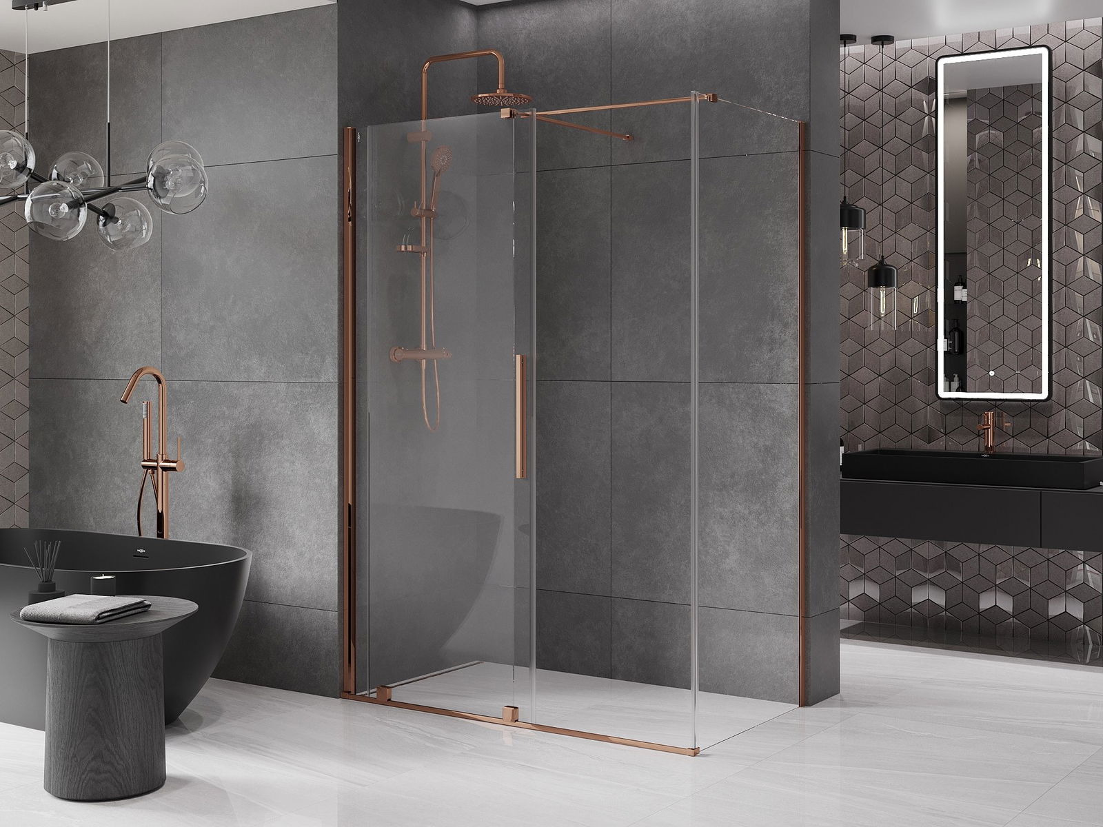 Mexen Velar sliding shower cabin 160 x 80 cm, transparent, pink gold - 871-160-080-01-60