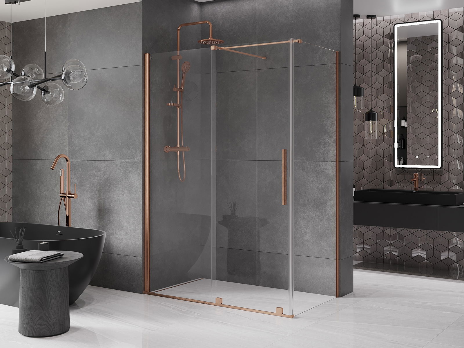 Mexen Velar sliding shower cabin 150 x 80 cm, transparent, brushed copper - 871-150-080-01-65
