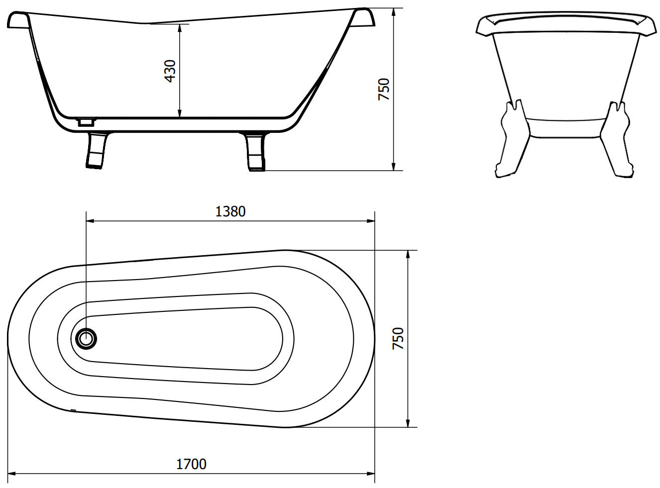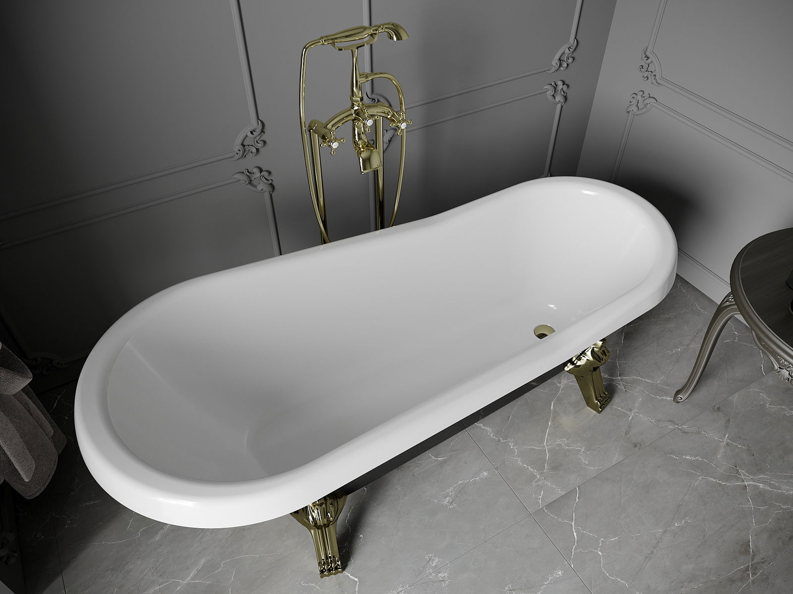 The bathtub is equipped with adjustable legs that allow it to be leveled even on uneven surfaces. A practical solution that ensures greater stability and safety during use and easy installation.