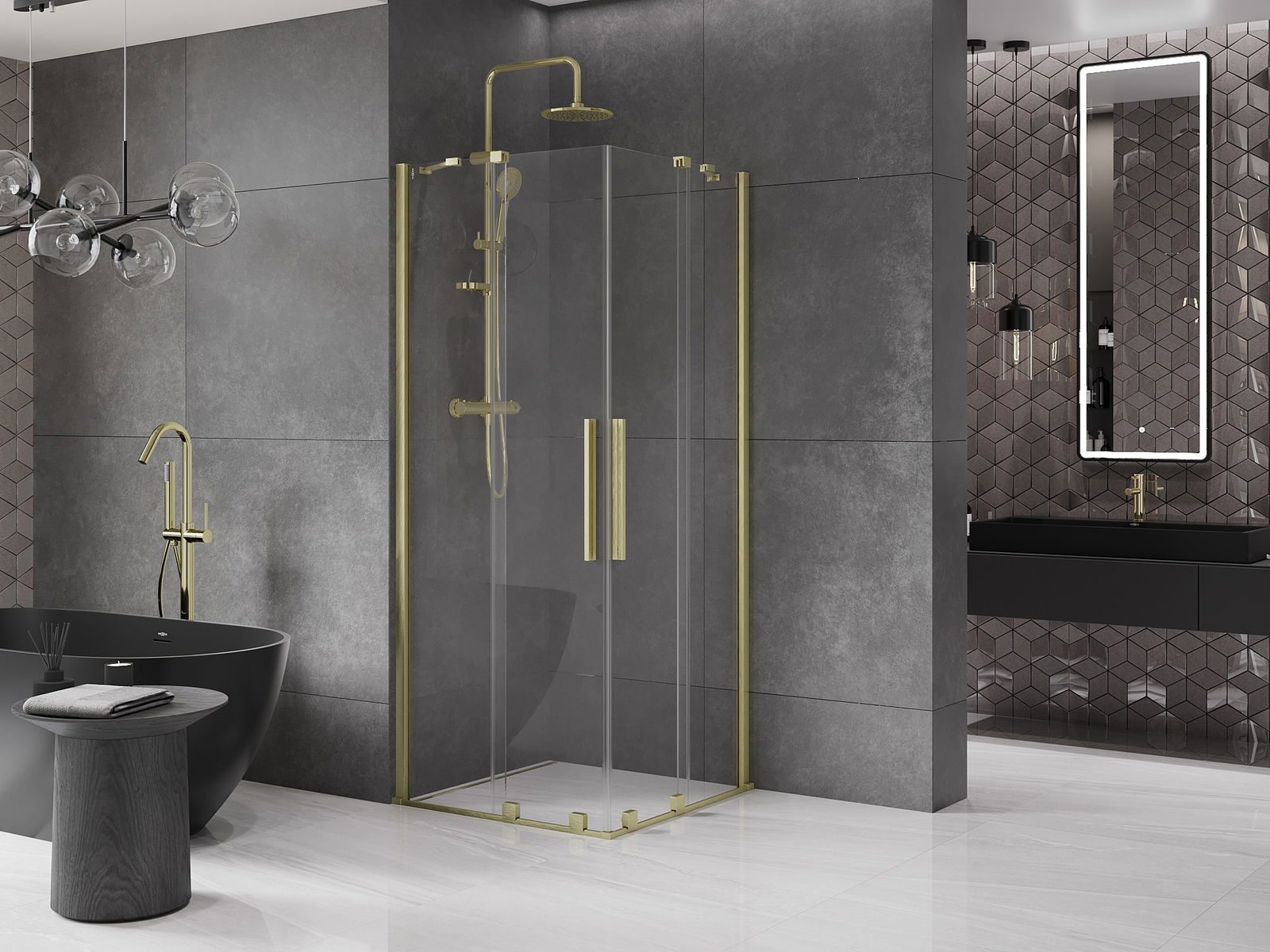 The handy and convenient handle is made of stainless steel. The modern shape combined with the finish matching the colour of the profiles gives the whole a modern and stylish look, emphasising the aesthetics of any bathroom.