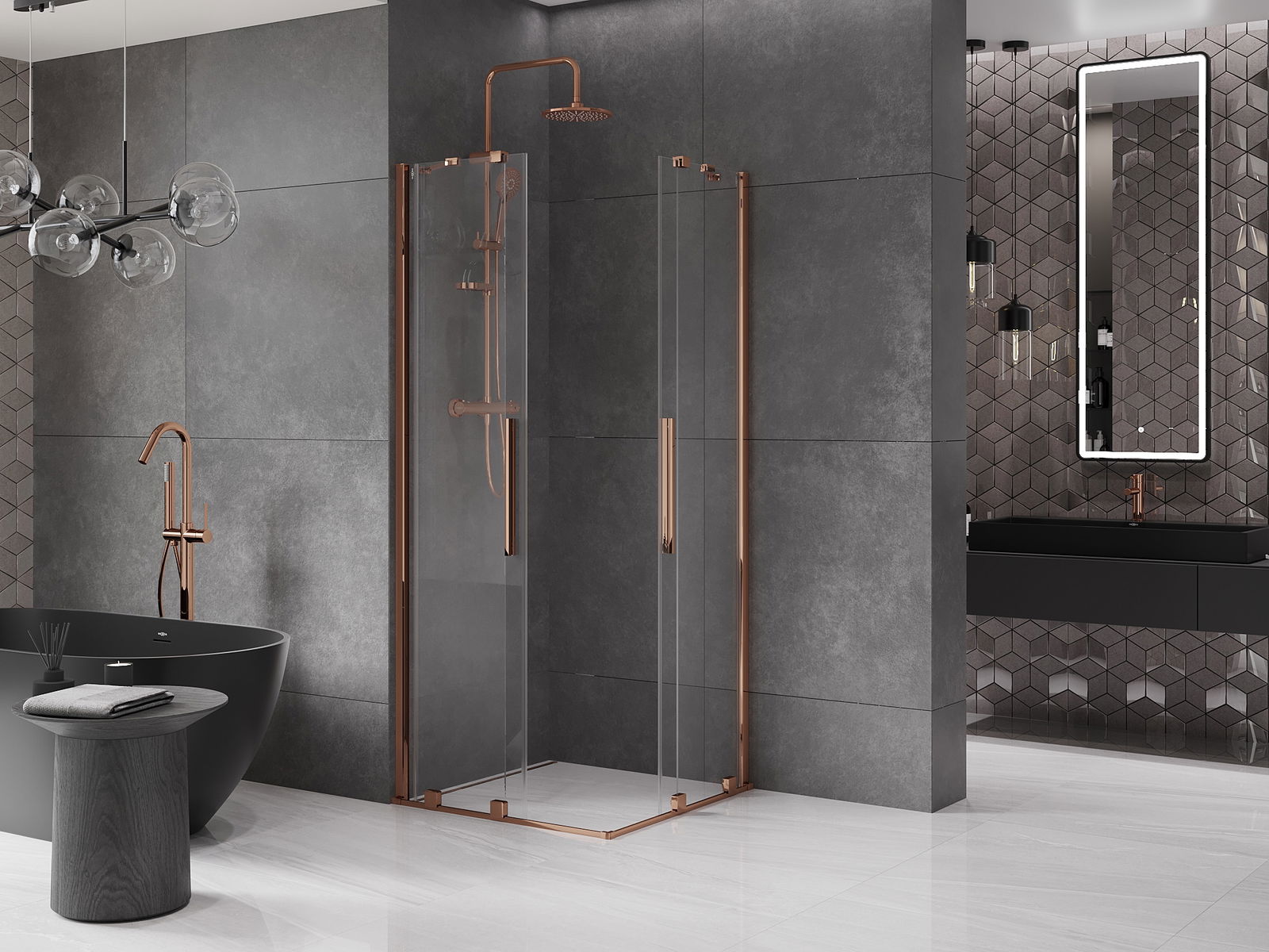 Mexen Velar Duo sliding shower enclosure 80 x 80 cm, transparent, rose gold - 871-080-080-02-60