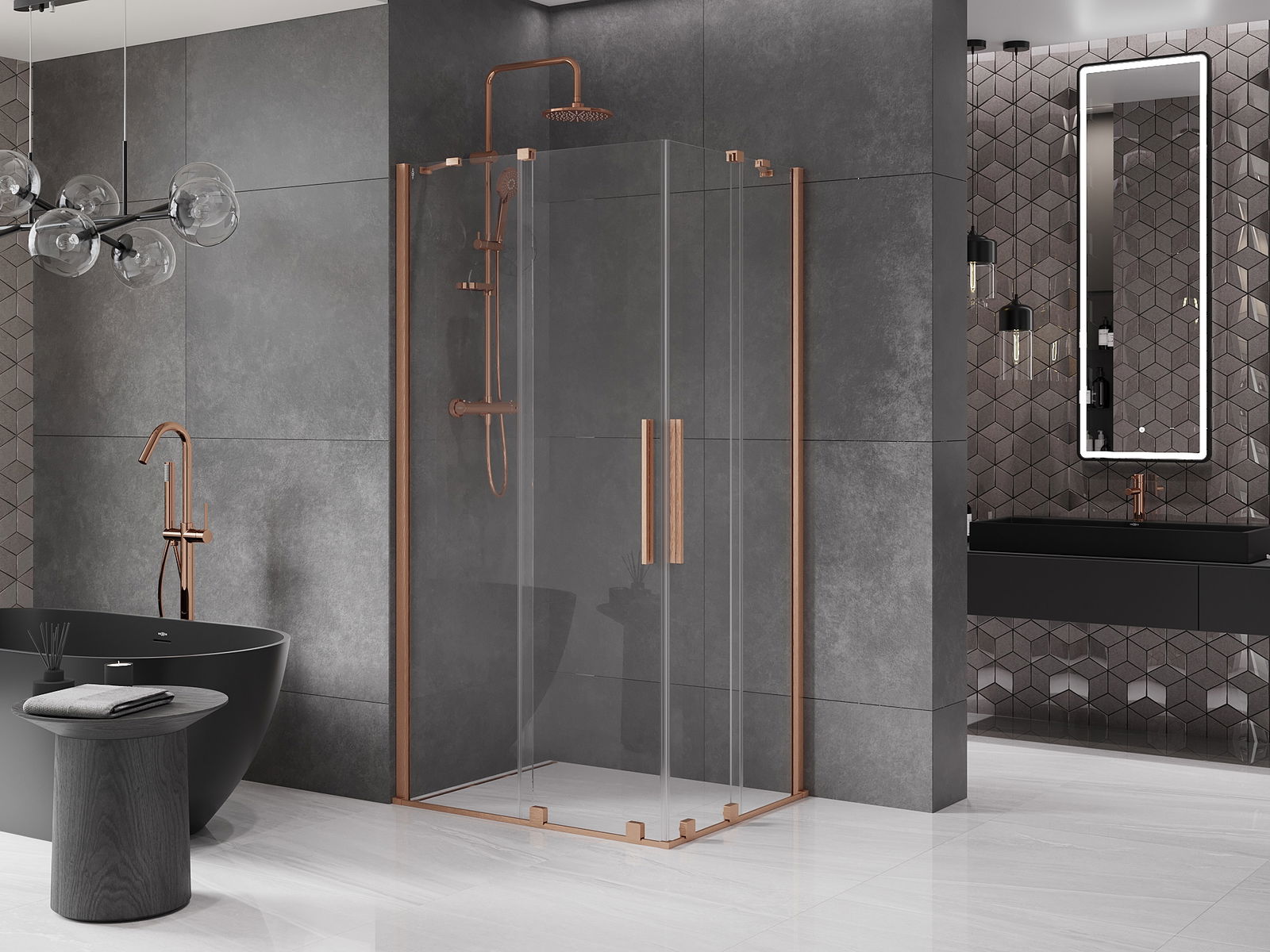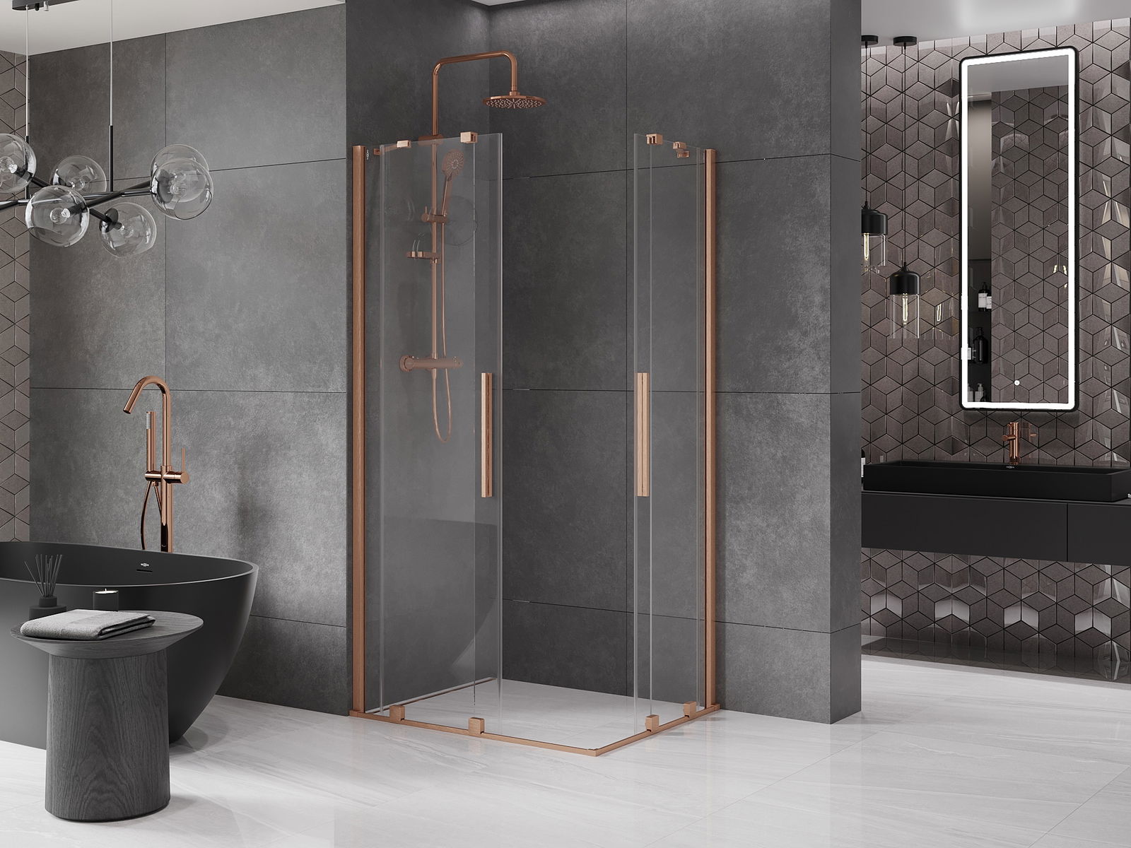 Mexen Velar Duo sliding shower enclosure 90 x 80 cm, transparent, brushed copper - 871-090-080-02-65