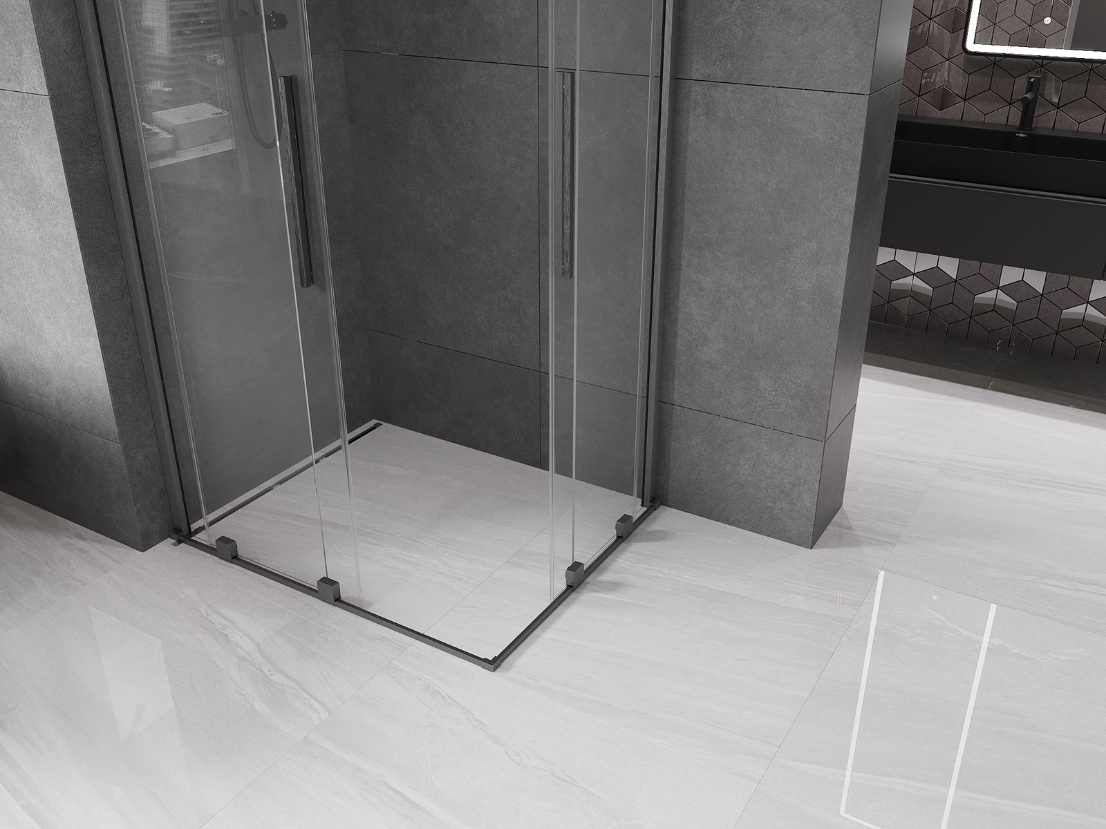 Mexen Velar Duo sliding shower cabin 100 x 90 cm, transparent, brushed gun gray - 871-100-090-02-66